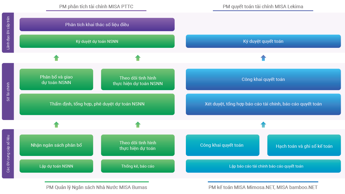 MISA sẽ cung cấp nền tảng tài chính cho chính phủ điện tử. Nền tảng này là cầu nối trung gian để kết nối các phần mềm quản lý tại cơ quan thuế, hải quan, đơn vị sử dụng ngân sách, đơn vị sử dụng tài sản, kho bạc đang sử dụng các phần mềm MISA như: MISA Mimosa.NET, MISA Bamboo.NET, MISA QLTS, MISA meInvoice, MISA Bumas,… với cơ sở dữ liệu (CSDL) quốc gia tài sản công, CSDL quốc gia tài chính, trung tâm điều hành tỉnh, cổng thông tin điện tử của Sở Tài chính để công khai số liệu chia sẻ. Nền tảng này cũng sẽ tự động thu thập số liệu để tổng hợp, phân tích để từ đó cung cấp các báo cáo về: Điều hành lập dự toán, Tình hình chấp hành ngân sách nhà nước (NSNN), Tài sản công , Quyết toán NSNN.