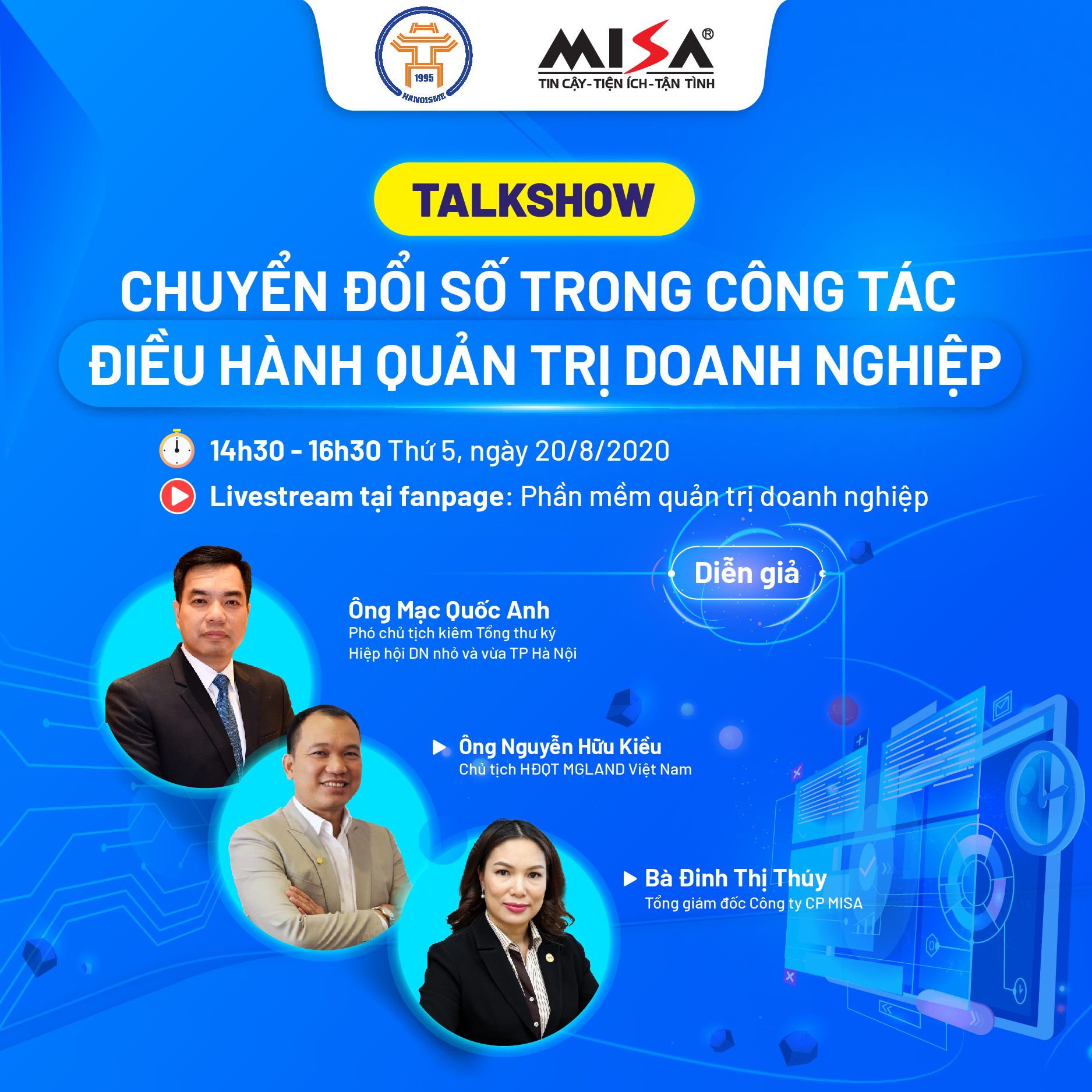 Nhằm giúp các doanh nghiệp tìm lời giải về vấn đề chuyển đổi số, Hiệp hội Doanh nghiệp Vừa và nhỏ Thành phố Hà Nội phối hợp với MISA – một nhà cung cấp hàng đầu về các ứng dụng công nghệ cho doanh nghiệp, tổ chức hội thảo online với chủ đề “Chuyển đổi số trong công tác điều hành quản trị doanh nghiệp”,vào ngày 20/08 /2020.