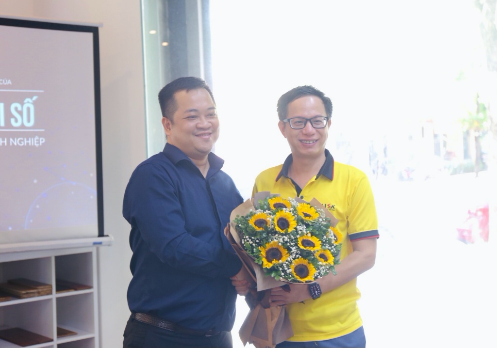 P. Chủ tịch HĐQT Công ty CP MISA Nguyễn Xuân Hoàng nhận bó qua hoa tươi thắm từ BTC chương trình