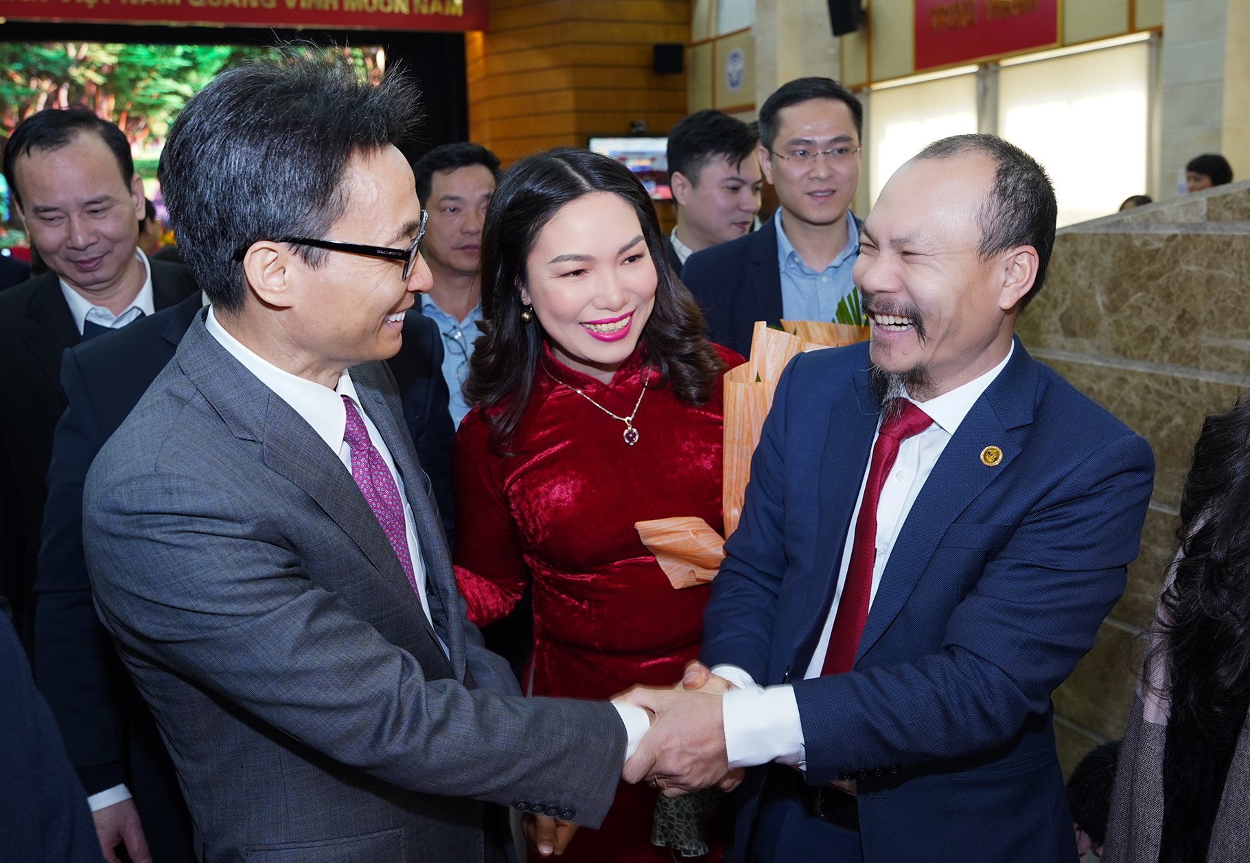 Phó Thủ tướng Vũ Đức Đam chúc mừng Chủ tịch HĐQT MISA Lữ Thành Long cùng đội ngũ công ty và bày tỏ sự tin tưởng vào chương trình hỗ trợ doanh nghiệp nhỏ và vừa chuyển đổi số trong công tác tài chính – kế toán của MISA