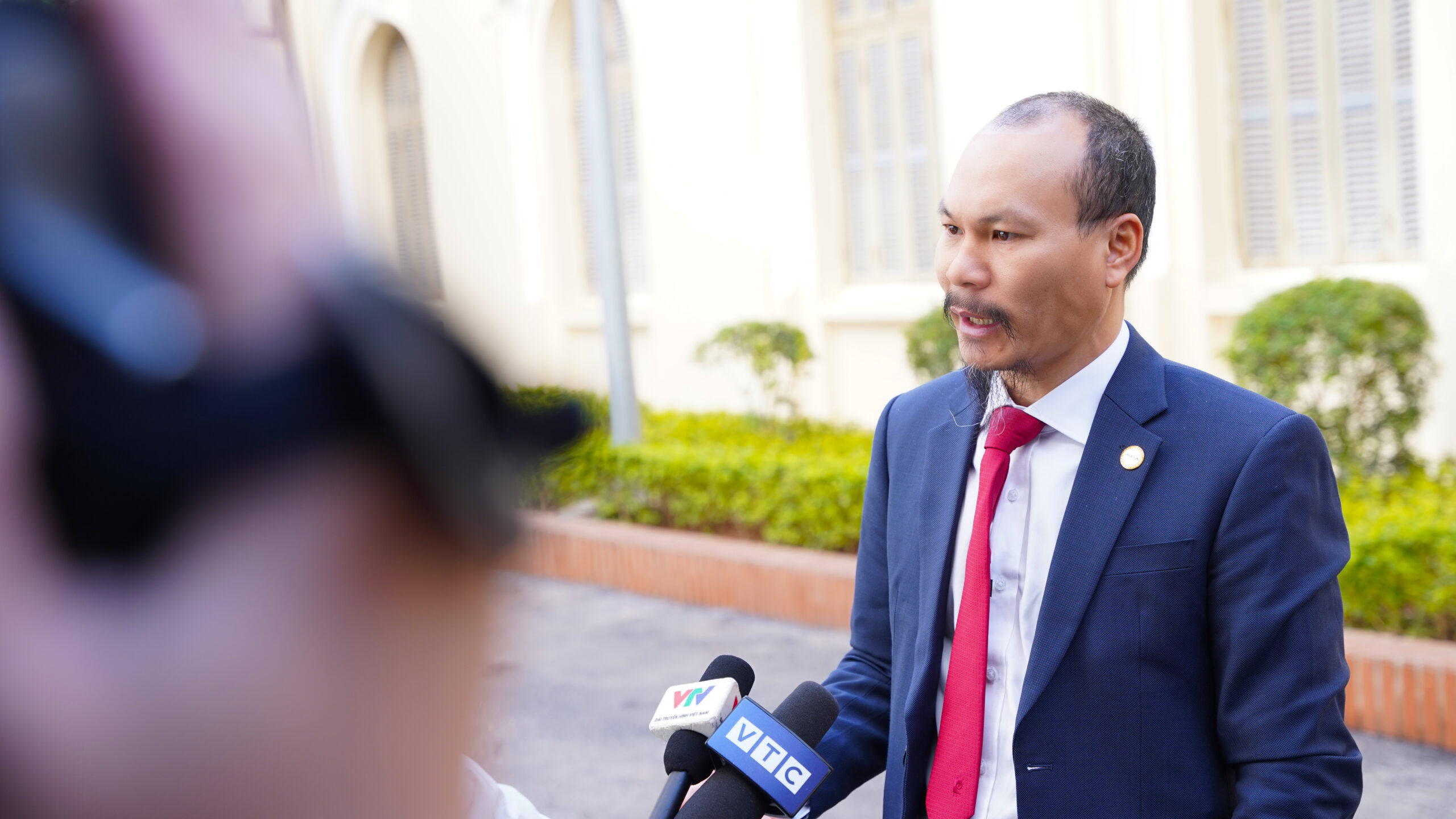 Chủ tịch HĐQT MISA Lữ Thành Long trả lời các cơ quan truyền thông báo chí tại sự kiện về chính sách đồng hành chuyển đổi số với doanh nghiệp vừa và nhỏ của MISA