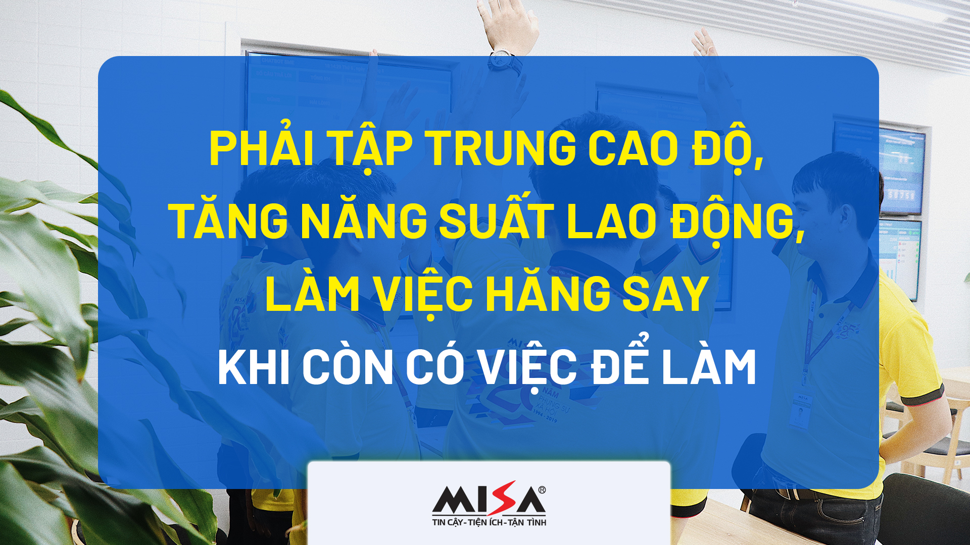 Trong muôn vàn khó khăn chung, người MISA chúng ta có được sự may mắn là công việc của chúng ta có thể làm việc được từ xa, sản phẩm của chúng ta tạo ra đang rất cần thiết và hữu ích cho khách hàng trong thời điểm hiện tại và đặc biệt là khi giãn cách xã hội. Đó là một cơ hội lớn cho mỗi chúng ta và cho công ty trong giai đoạn này.