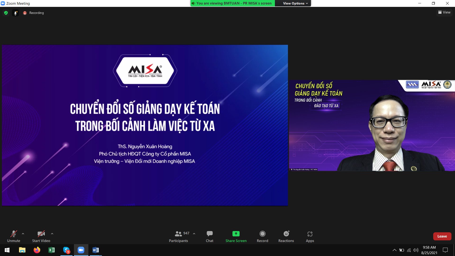 Cũng trong buổi hội thảo, ThS Nguyễn Xuân Hoàng – Phó Chủ tịch HĐQT Công ty Cổ phần MISA, Viện trưởng Viện Đổi mới Doanh nghiệp MISA chỉ ra những thách thức mà người hành nghề, giảng dạy và học tập bộ môn Kế toán gặp phải khi làm việc từ xa. Ông Hoàng nhấn mạnh: “Chuyển đổi số giúp tự động hoá xử lý và báo cáo để kịp thời đề xuất quyết sách phù hợp. MISA phát triển phần mềm AMIS Kế toán hoàn toàn online nằm trong nền tảng MISA AMIS. Đây là giải pháp cho giảng viên và sinh viên học ngành Kế toán trong bối cảnh giảng dạy từ xa, đáp ứng nhu cầu làm việc, học tập mọi lúc mọi nơi”.