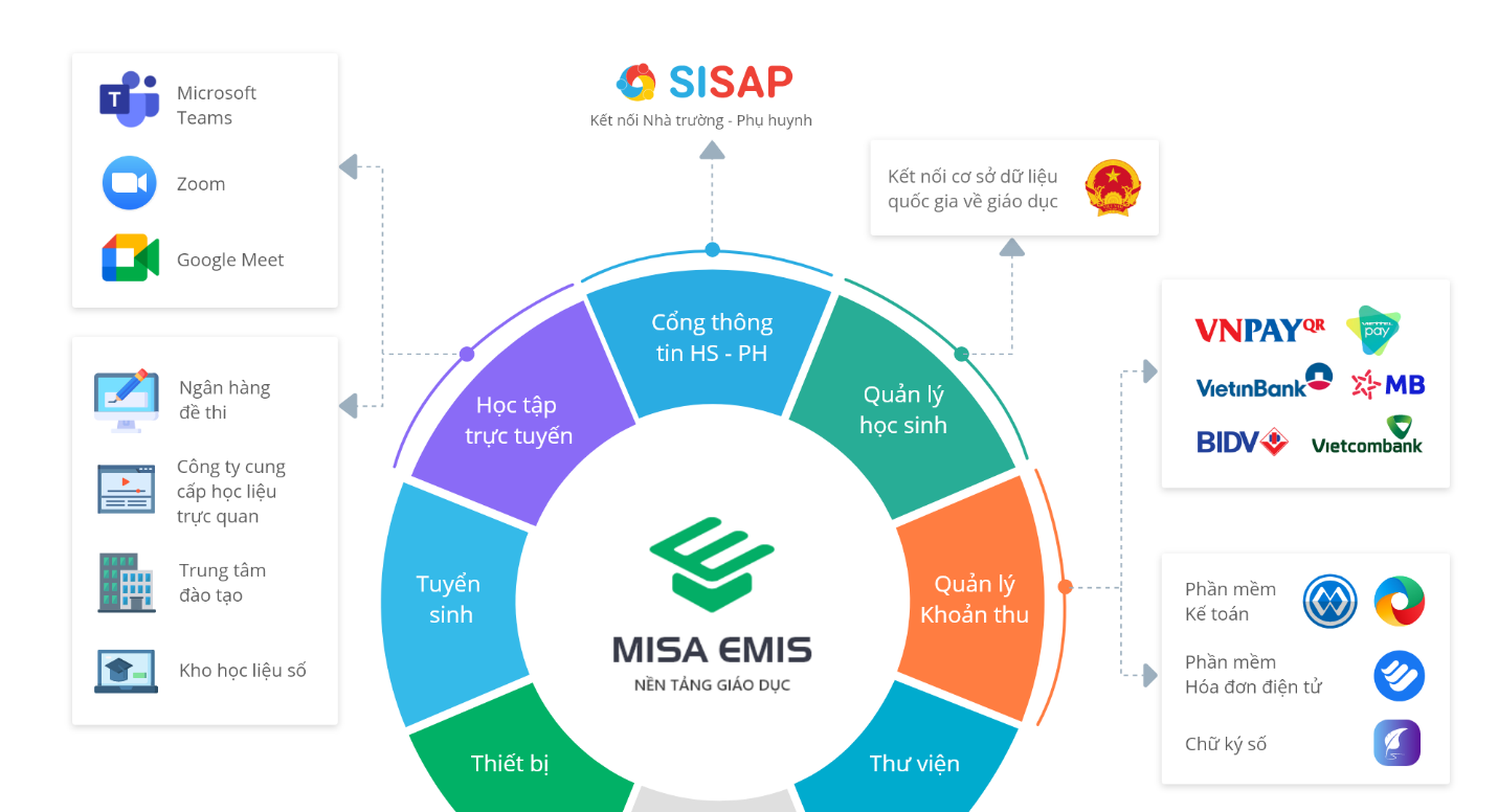 Ngoài ra, để đảm bảo công tác triển khai ứng dụng dạy và học từ xa hiệu quả, trong thời gian qua MISA đã triển khai tài trợ miễn phí Nền tảng Giáo dục MISA EMIS cho nhiều trường học và cơ quan quản lý các cấp. Cụ thể, MISA hỗ trợ tập huấn tập trung hướng dẫn sử dụng MISA EMIS qua kênh trực tuyến miễn phí; Tặng miễn phí MISA EMIS từ 3 – 6 tháng (tùy theo từng địa phương) giúp các Trường, Phòng Giáo dục và Đào tạo, Sở Giáo dục và Đào tạo kịp thời triển khai công tác đào tạo – giảng dạy và quản lý giáo dục từ xa ngay đầu năm học 2021 – 2022; và hỗ trợ miễn phí trong 2 tháng cho phụ huynh học sinh sử dụng ứng dụng trao đổi thông tin với nhà trường MISA SISAP – nằm trong Nền tảng giáo dục MISA EMIS. Chương trình hỗ trợ này vẫn sẽ được tiếp tục triển khai thực hiện trong thời gian tới.