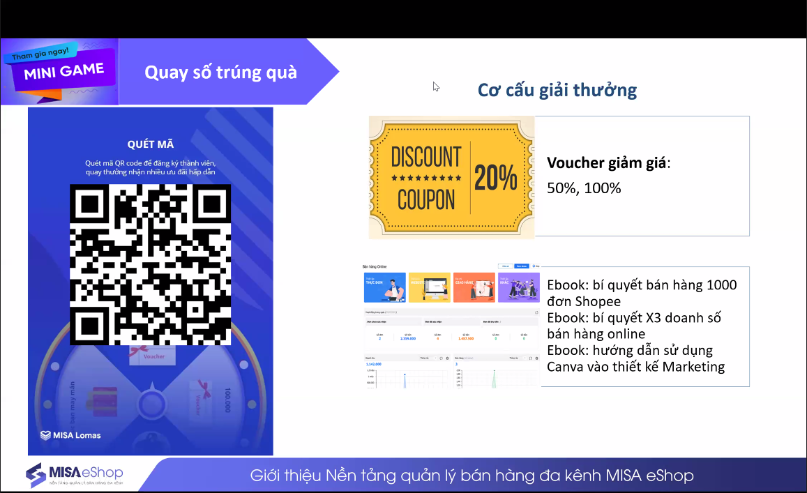 Tại hội thảo, Công ty Cổ phần MISA cũng dành tặng những phần quà hấp dẫn cho người chơi thông qua Minigame “Vòng quay may mắn”. Minigame cũng được xây dựng dựa trên giải pháp MISA Lomas. Cuối chương trình, BTC dành tặng voucher 25% khi triển khai nền tảng MISA eShop cho tất cả các chủ cửa hàng và doanh nghiệp bán lẻ khi đăng ký nhận voucher.