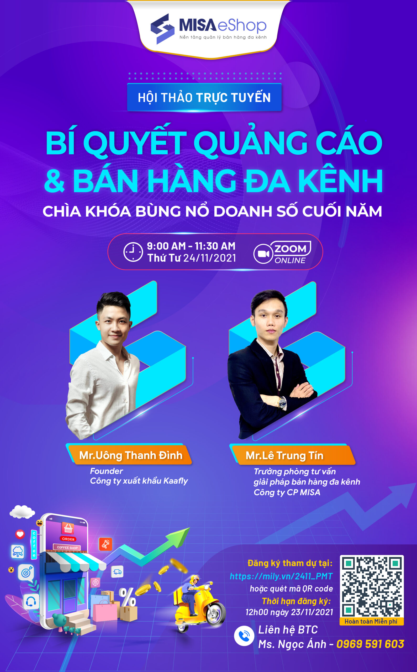 Nhằm hỗ trợ những khó khăn của chủ cửa hàng bán lẻ trước trạng thái bình thường mới, gia tăng tính cạnh tranh cuối năm, Công ty Cổ phần MISA tổ chức hội thảo trực tuyến “Bí quyết quảng cáo và bán hàng đa kênh – chìa khoá bùng nổ doanh số cuối năm”. Hội thảo được diễn ra: