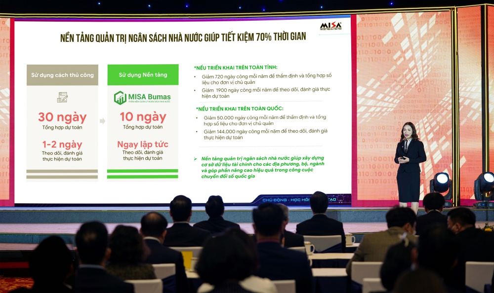 Tại Diễn đàn quốc gia phát triển doanh nghiệp Công nghệ số năm nay, MISA đem tới Nền tảng quản trị ngân sách Nhà nước MISA Bumas hỗ trợ chuyển đổi số, giảm tới 70% thời gian lập dự toán và quản lý chi tiêu ngân sách Nhà nước.