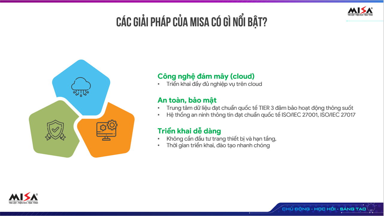 Có thể nói, những giải pháp của các doanh nghiệp số là yếu tố tiên quyết để tạo nên một Việt Nam số có khả năng phục hồi và phát triển kinh tế nhanh chóng. Tại diễn đàn năm nay, MISA đã đem đến giải pháp quản trị ngân sách Nhà nước MISA Bumas. Đây là công cụ đắc lực giúp các đơn vị hành chính sự nghiệp (HCSN) thực hiện công tác lập, phân bổ, quản lý tổng hợp ngân sách Nhà nước một cách chính xác, kịp thời. Giải pháp đã góp phần trong nhiệm vụ hội tụ dữ liệu, đóng góp quan trọng trong công cuộc chuyển đổi số quốc gia.