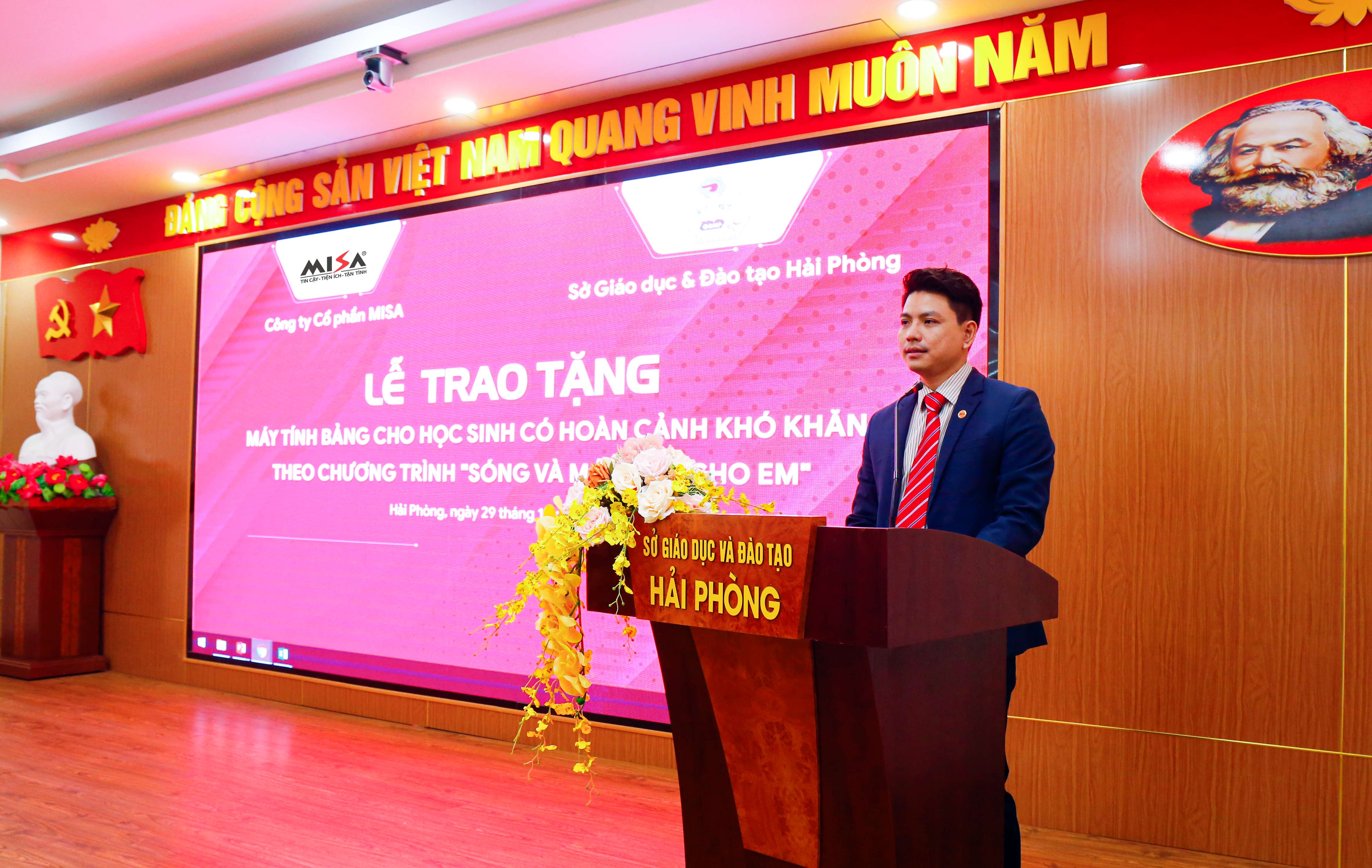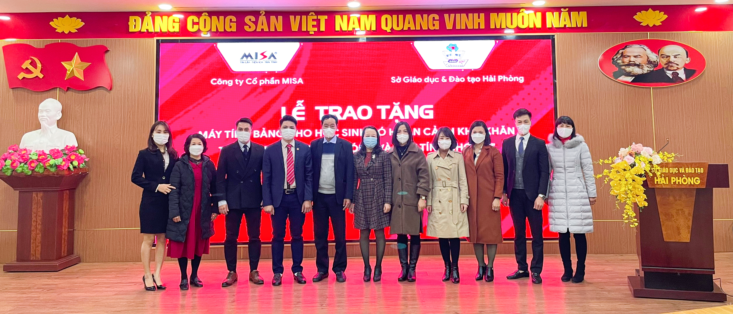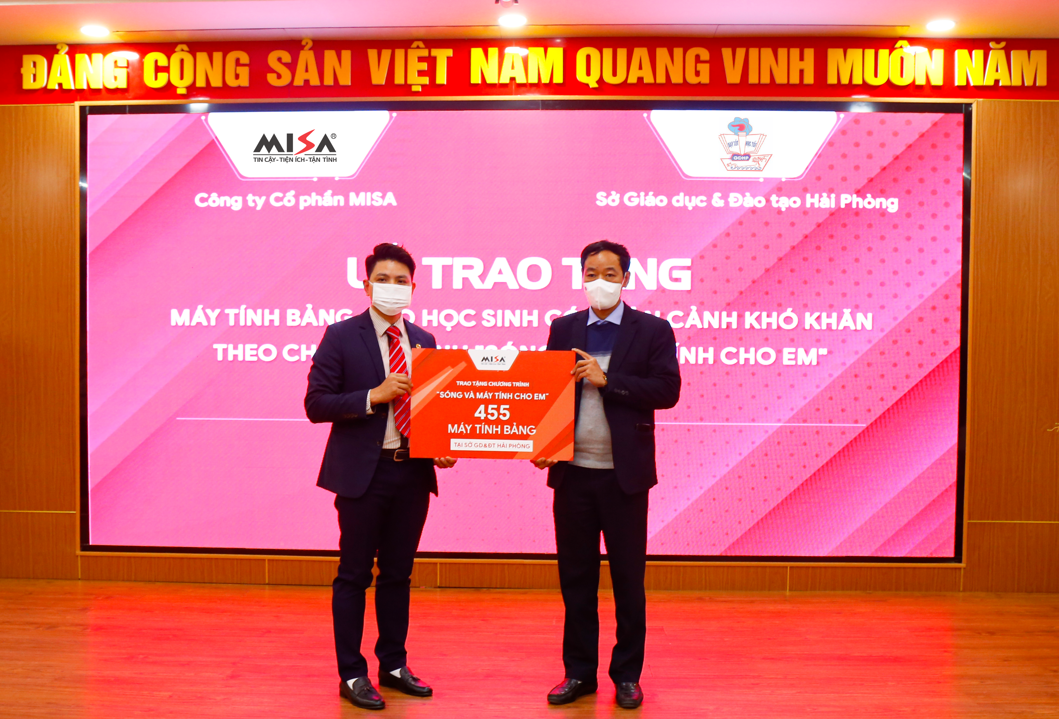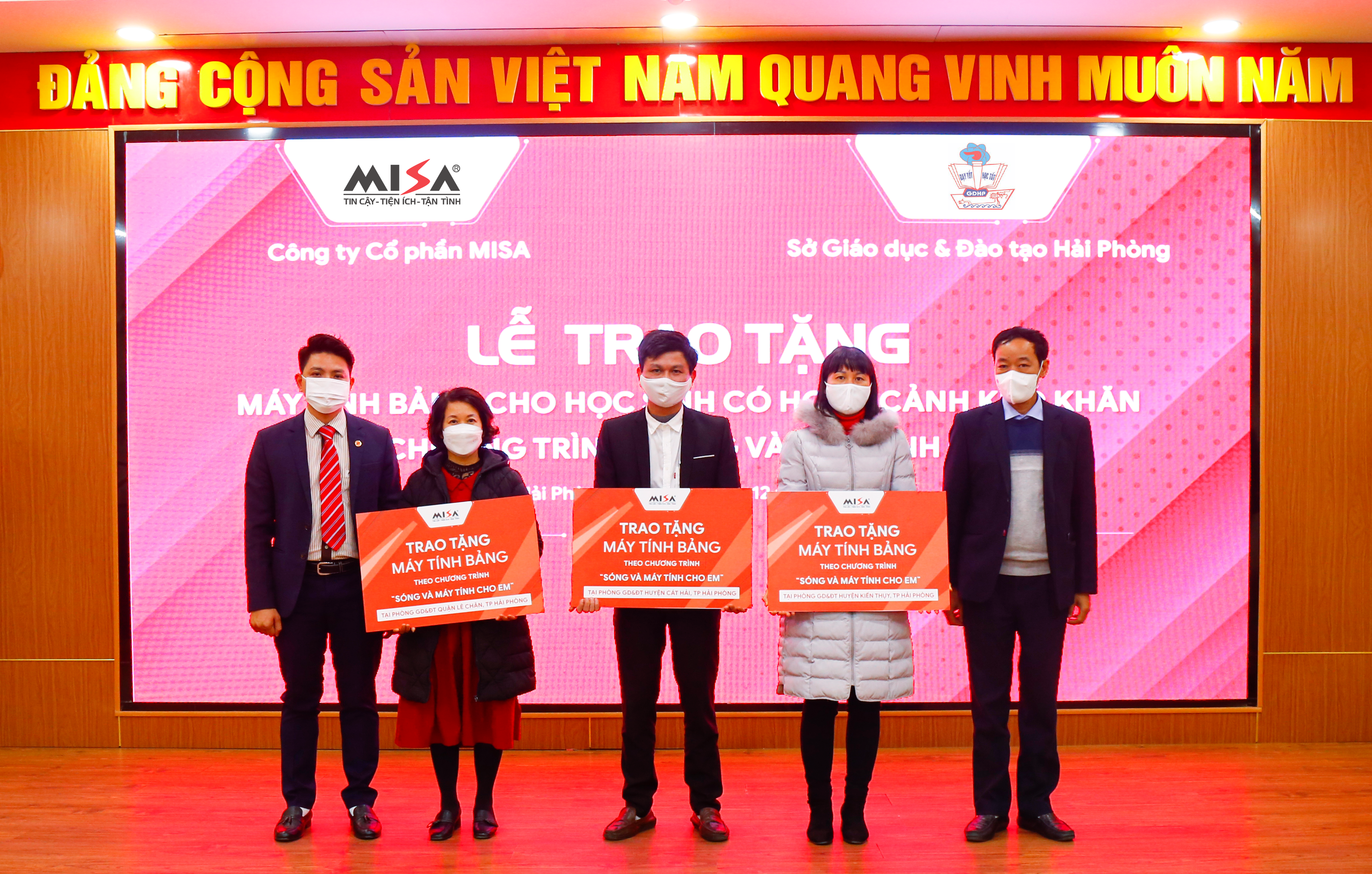 Chiều ngày 29/12, Công ty Cổ phần MISA trao tặng 455 máy tính bảng cho các học sinh tiểu học và trung học cơ sở thuộc hộ nghèo, cận nghèo tại thành phố Hải Phòng theo kế hoạch phân bổ của Bộ Giáo dục và Đào tạo.
