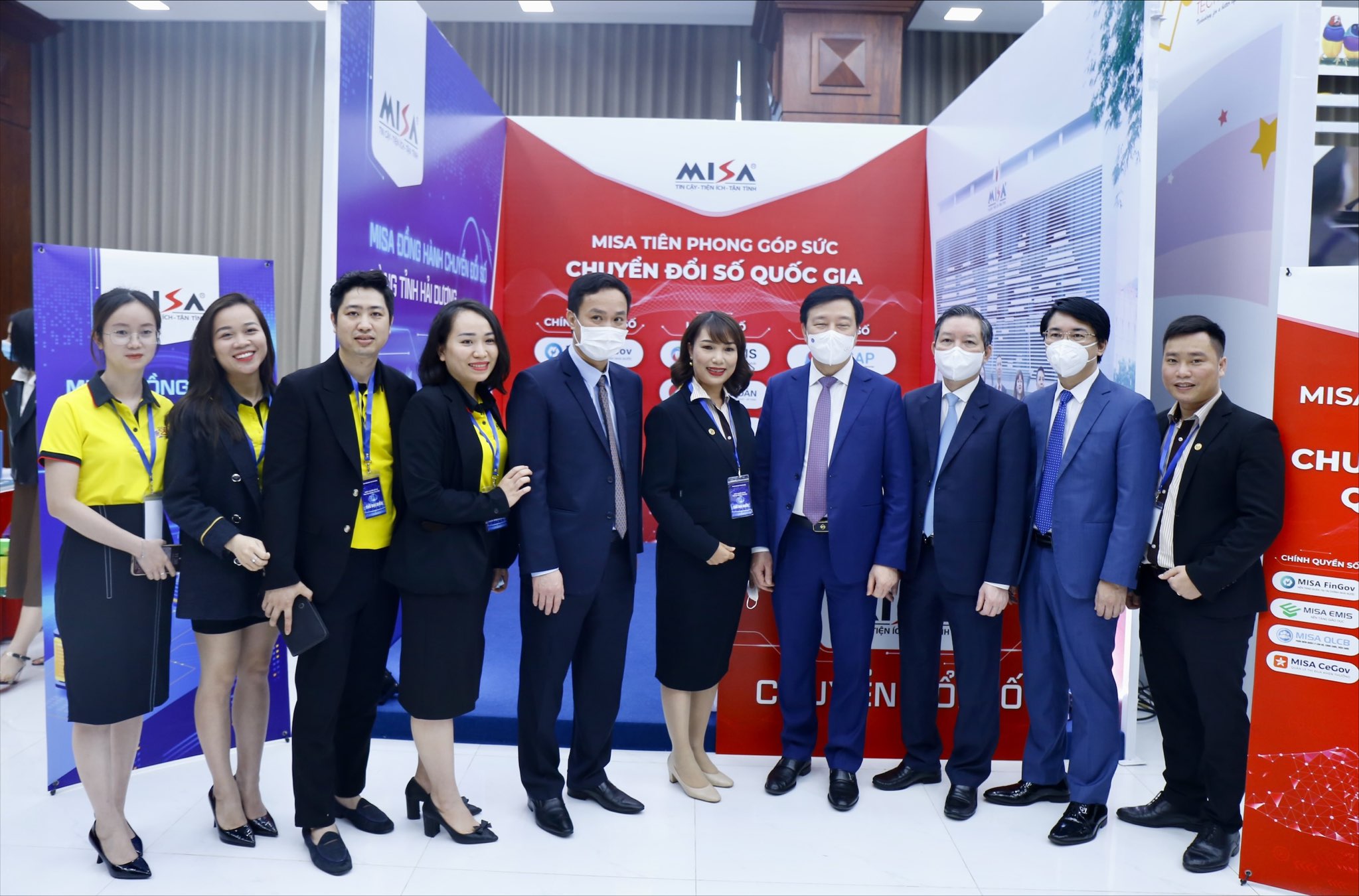 Thu hút rất đông sự quan tâm của các quan khách, doanh nghiệp đến tham quan, khu vực trưng bày của MISA tại chương trình giới thiệu những giải pháp chuyển đổi số theo 3 trụ cột: Chính phủ số – Kinh tế số và Xã hội số. Ở lĩnh vực Chính phủ số, MISA đem đến các phần mềm, nền tảng với thành tựu công nghệ mới nhất, phù hợp nhất với các cơ quan, đơn vị hành chính sự nghiệp trên địa bàn tỉnh như: Nền tảng quản trị tài chính Nhà nước MISA FinGov, Nền tảng giáo dục MISA EMIS, Nền tảng quản lý Cán bộ – Công chức, Viên chức MISA QLCB, Phần mềm quản lý thi đua – khen thưởng MISA CeGov, Phần mềm quản lý công việc MISA TaskGo. Các giải pháp này nhằm nâng cao hiệu quả điều hành, quản lý góp phần đẩy mạnh cải cách thủ tục hành chính, xây dựng các cơ sở dữ liệu ngành tiến tới xây dựng chính quyền số của tỉnh.