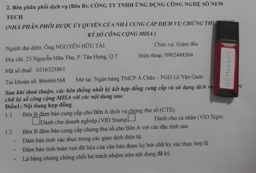 | 3 | Công ty TNHH Ứng dụng công nghệ số New Tech | 0902448364 | Giả mạo là đơn vị cung cấp dịch vụ chứng thực chữ ký số công cộng MISA | |