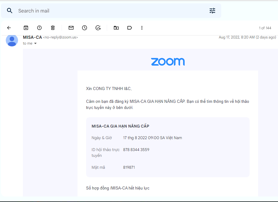 2/ Dấu hiệu email mạo danh MISA gia hạn và cung cấp dịch vụ chữ ký số MISA eSign: