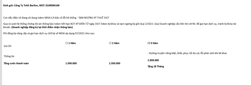 1/ Thông báo chính thức về việc mạo danh MISA gia hạn và cung cấp dịch vụ chữ ký số MISA eSign: