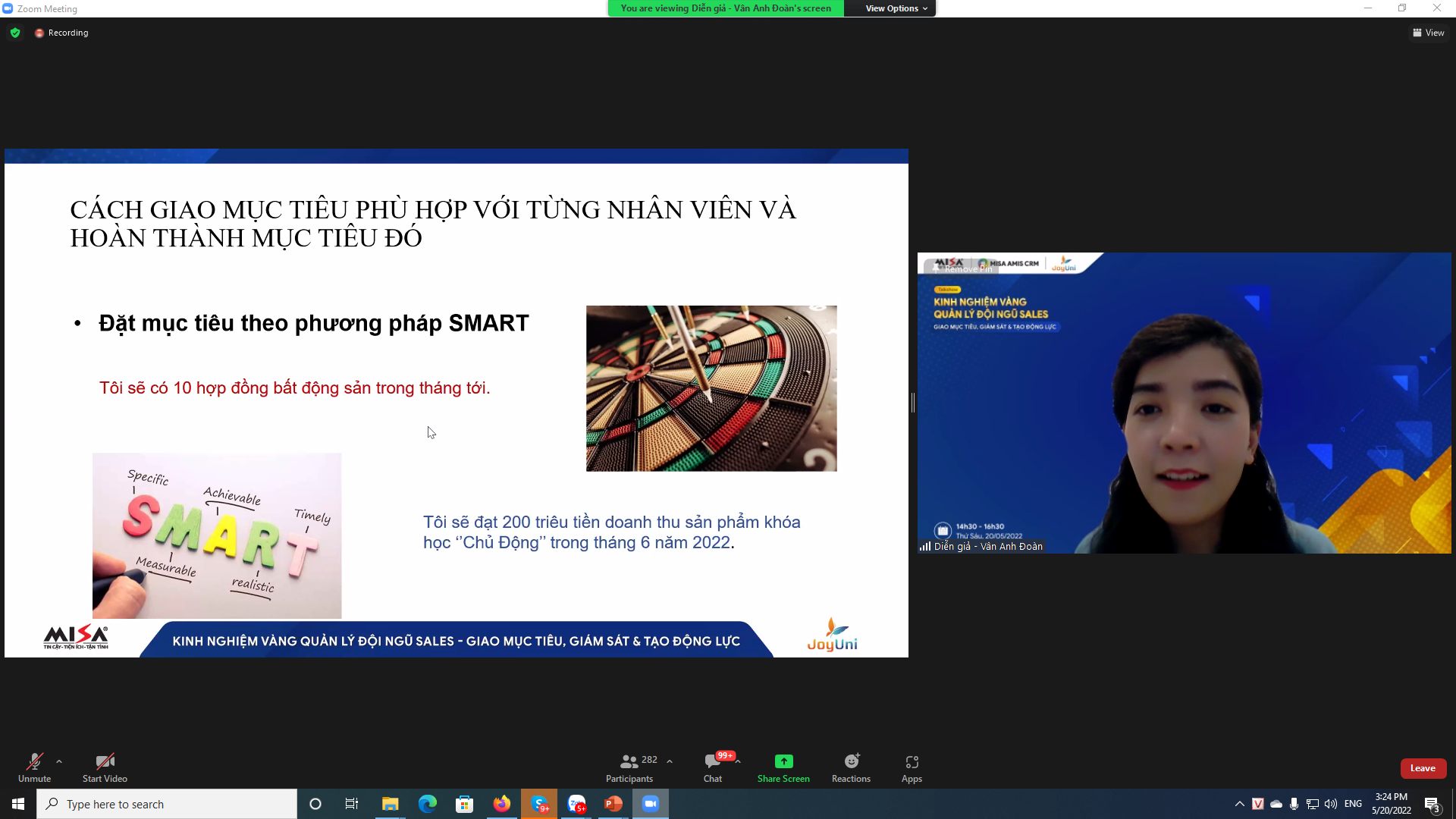 Để lượng hóa cụ thể mục tiêu cho từng nhân viên kinh doanh, phương pháp SMART là giải pháp mà chị Vân Anh gợi ý để các doanh nghiệp thúc đẩy đội ngũ sales. Ngoài ra, quản lý kinh doanh cần phân nhỏ và đặt phễu mục tiêu, lên quy trình bán hàng và đo lường đánh giá chính xác năng lực nhân viên. Theo chị Vân Anh, việc tạo động lực cho nhân viên kinh doanh là đặc biệt quan trọng để họ hành động và có hiệu quả.