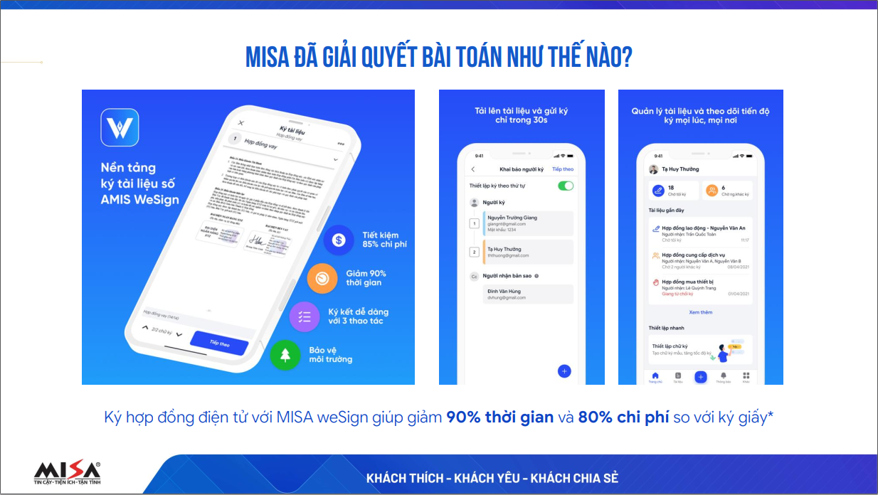 Hợp đồng điện tử AMIS WeSign giúp tiết kiệm đến 90% thời gian và 80% chi phí so với ký hợp đồng giấy