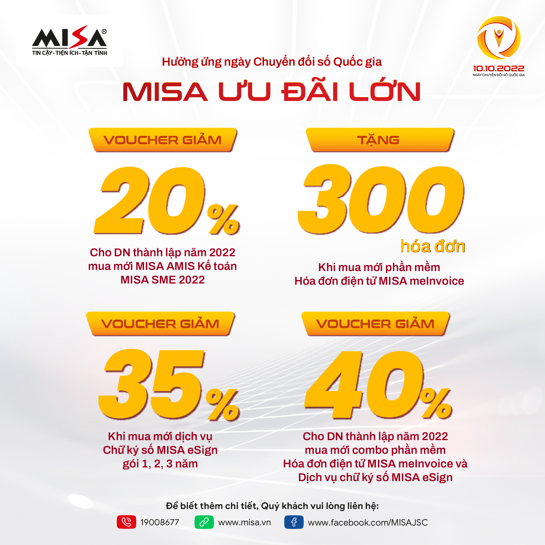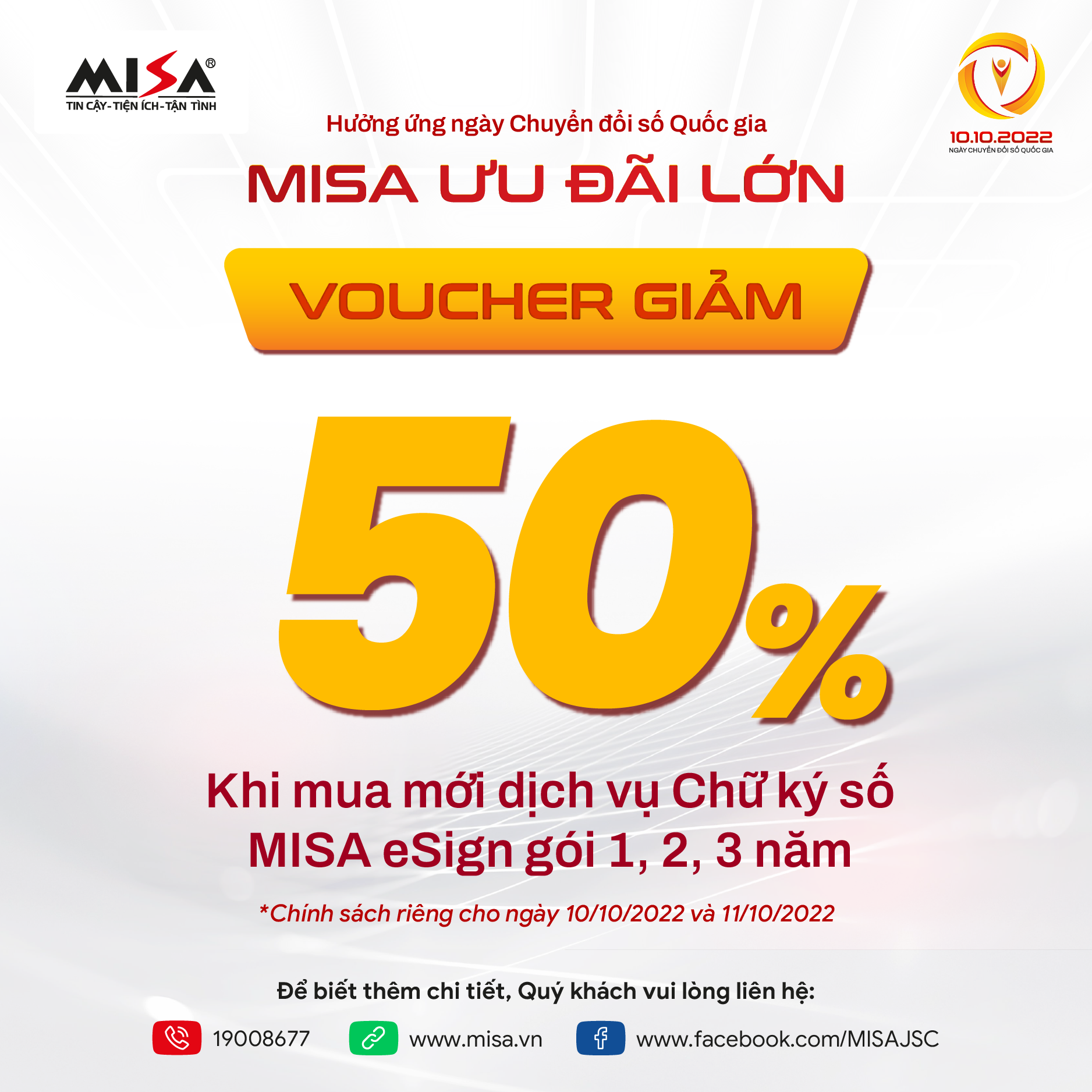 Hưởng ứng ngày Chuyển đổi số quốc gia 10/10 và đồng hành cùng doanh nghiệp “số hoá” hiệu quả, MISA ưu đãi lớn các giải pháp tài chính – kế toán và chữ ký số.