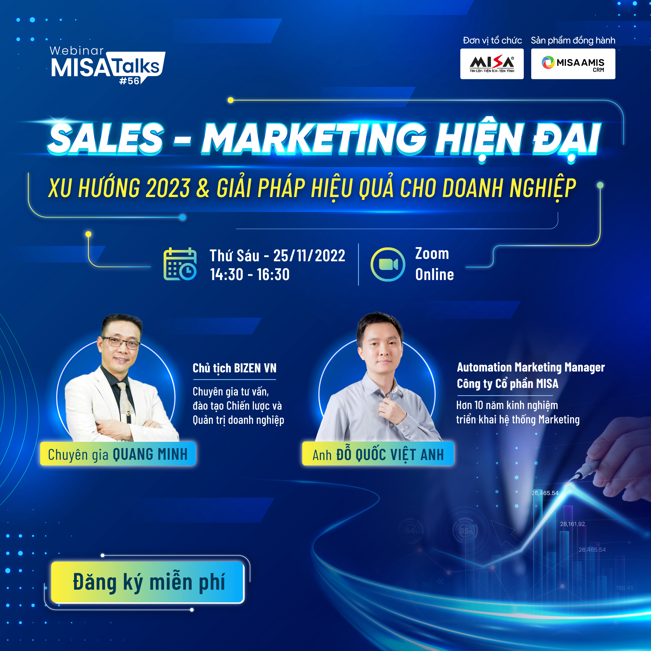 Để giúp doanh nghiệp giải đáp thắc mắc này, Công ty Cổ phần MISA tổ chức hội thảo trực tuyến với chủ đề: “Sales – Marketing hiện đại: Xu hướng 2023 & Giải pháp hiệu quả cho doanh nghiệp”. Hội thảo có sự tham dự của: