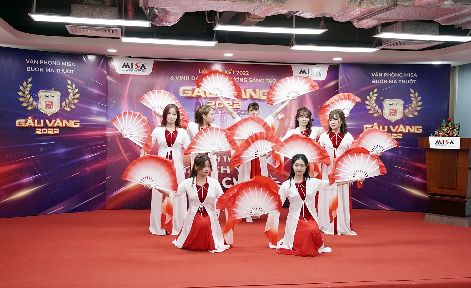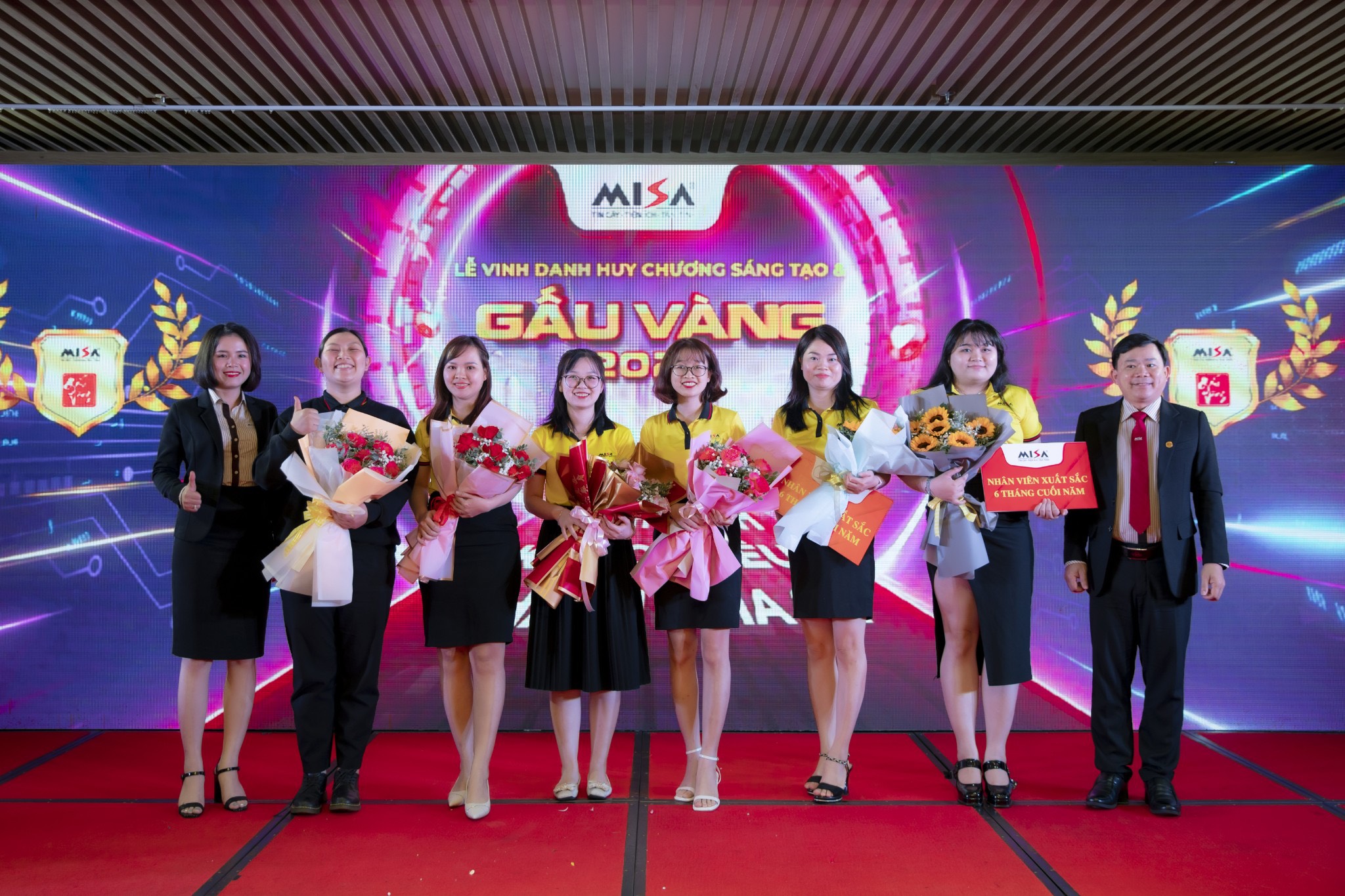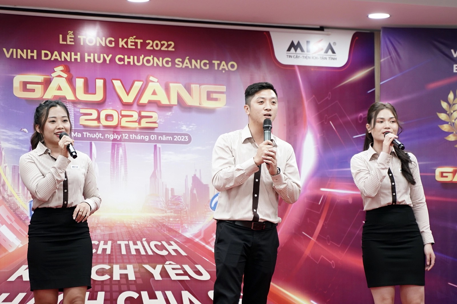 Tại Văn phòng MISA BMT, rực rỡ và tràn đầy cảm xúc Lễ trao giải Gala Gấu vàng 2022. Phó TGĐ Đỗ Hồng Quang đại diện BLĐ trao giải thưởng cao quý cho 5 Gấu Vàng cho khu văn phòng MISA BMT