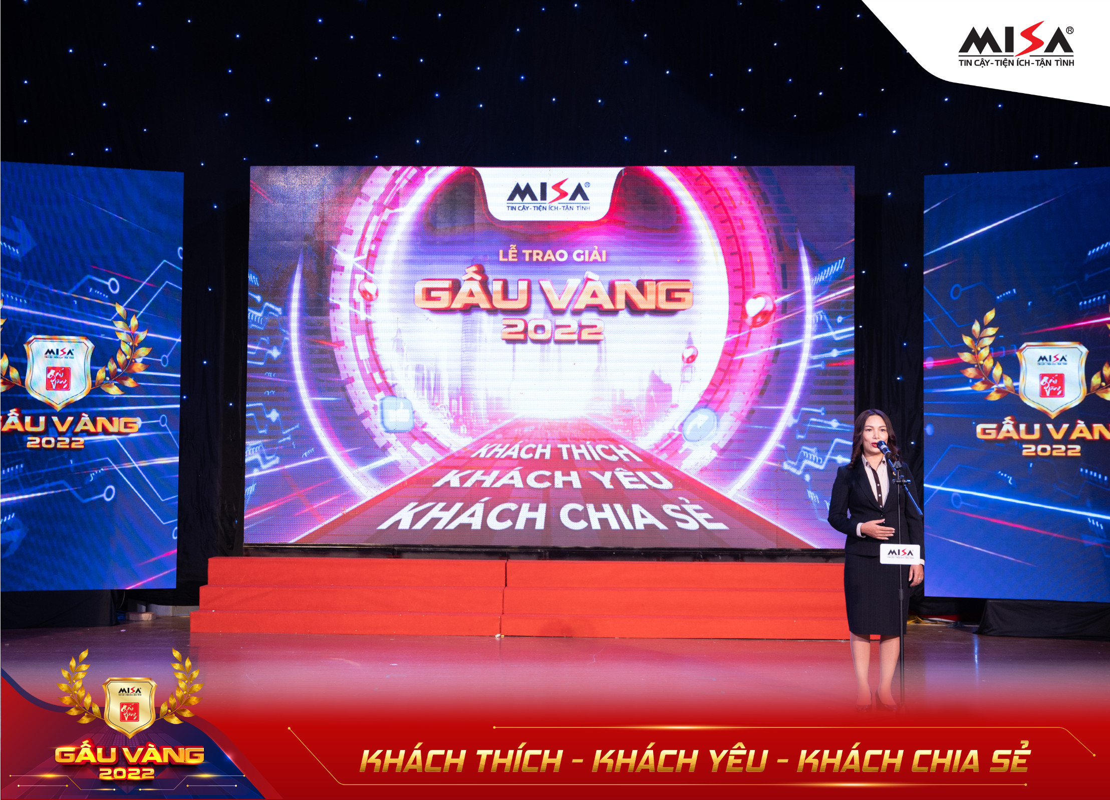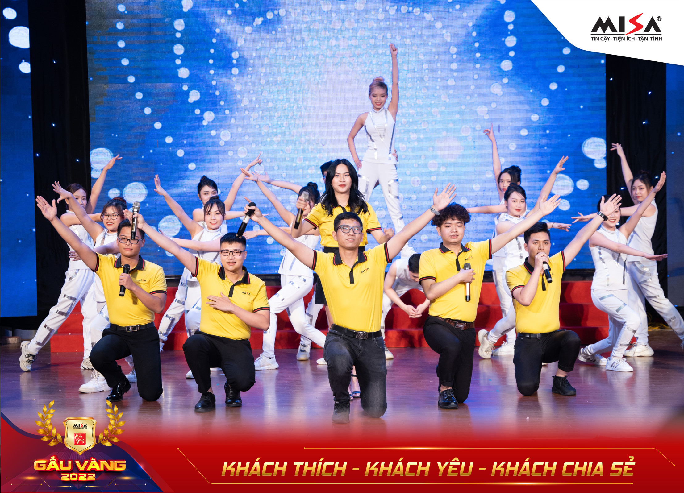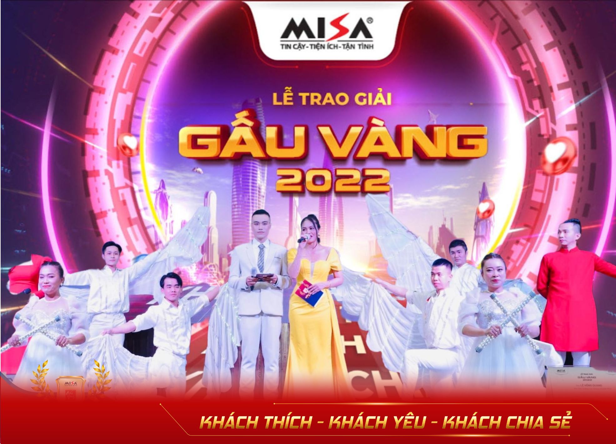 Gấu Vàng từ lâu đã được xem là sự kiện trọng đại nhất của người MISA, là nơi vinh danh những cá nhân đạt thành tích xuất sắc và nổi bật nhất trong năm. Tiếp tục định hướng lấy khách hàng làm trọng tâm, năm 2022, Gấu Vàng trở lại với chủ đề “Khách thích – Khách yêu – Khách chia sẻ” cùng concept hình ảnh độc đáo, đậm chất công nghệ với hiệu ứng Visual 3D sống động mang đến cho toàn thể Ban Lãnh đạo và CBNV MISA nhiều điều hấp dẫn, mới mẻ.