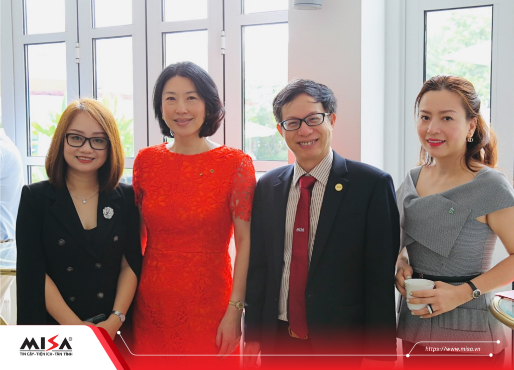 Phó Chủ tịch HĐQT MISA Nguyễn Xuân Hoàng chụp ảnh cùng Tổng Giám đốc ngân hàng Standard Chartered Việt Nam Michele Wee (thứ hai từ trái sang)