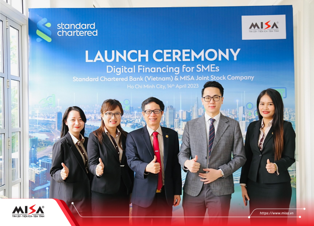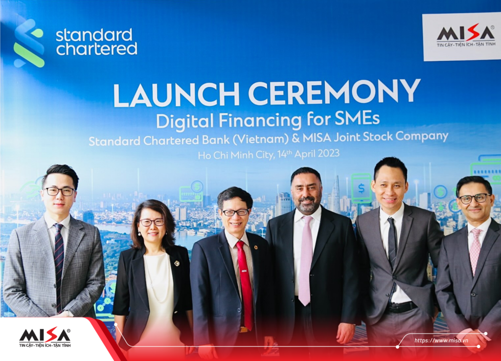 Ngày 14/04/2023, Công ty Cổ phần MISA và Ngân hàng Standard Chartered (Việt Nam) đã công bố hợp tác triển khai chương trình kết nối vay vốn trên nền tảng MISA Lending. Giải pháp này sẽ đồng hành cùng các doanh nghiệp vừa và nhỏ (SMEs) Việt Nam trong việc xây dựng nguồn vốn, chủ động nắm bắt các cơ hội kinh doanh để phát triển đột phá trong bối cảnh mới.