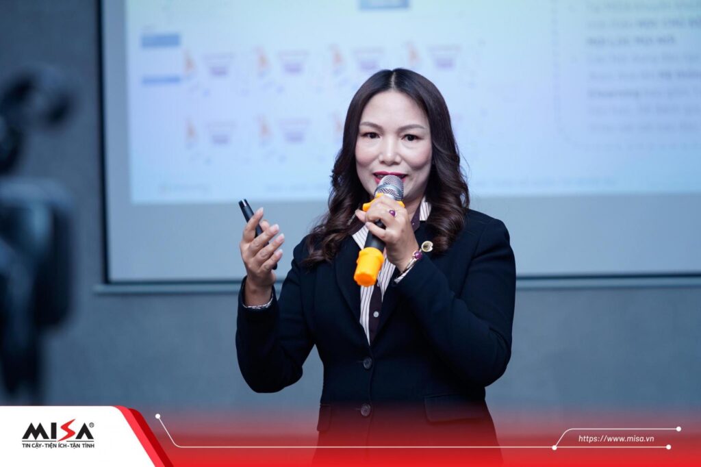 Bà Đinh Thị Thúy – Tổng Giám đốc MISA chia sẻ về những kinh nghiệm thực tế về việc triển khai Lean HR tại MISA trong chương trình hội thảo