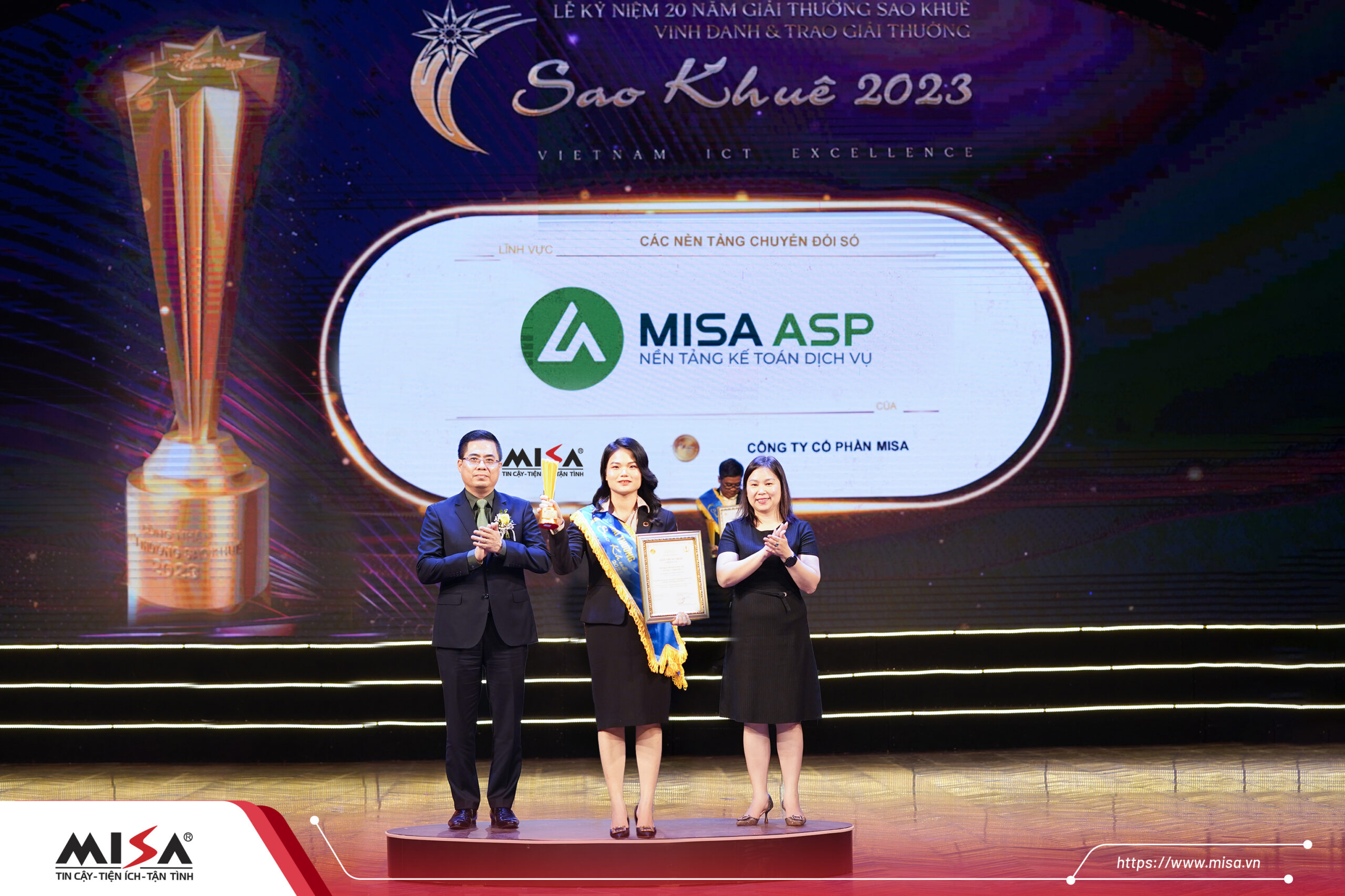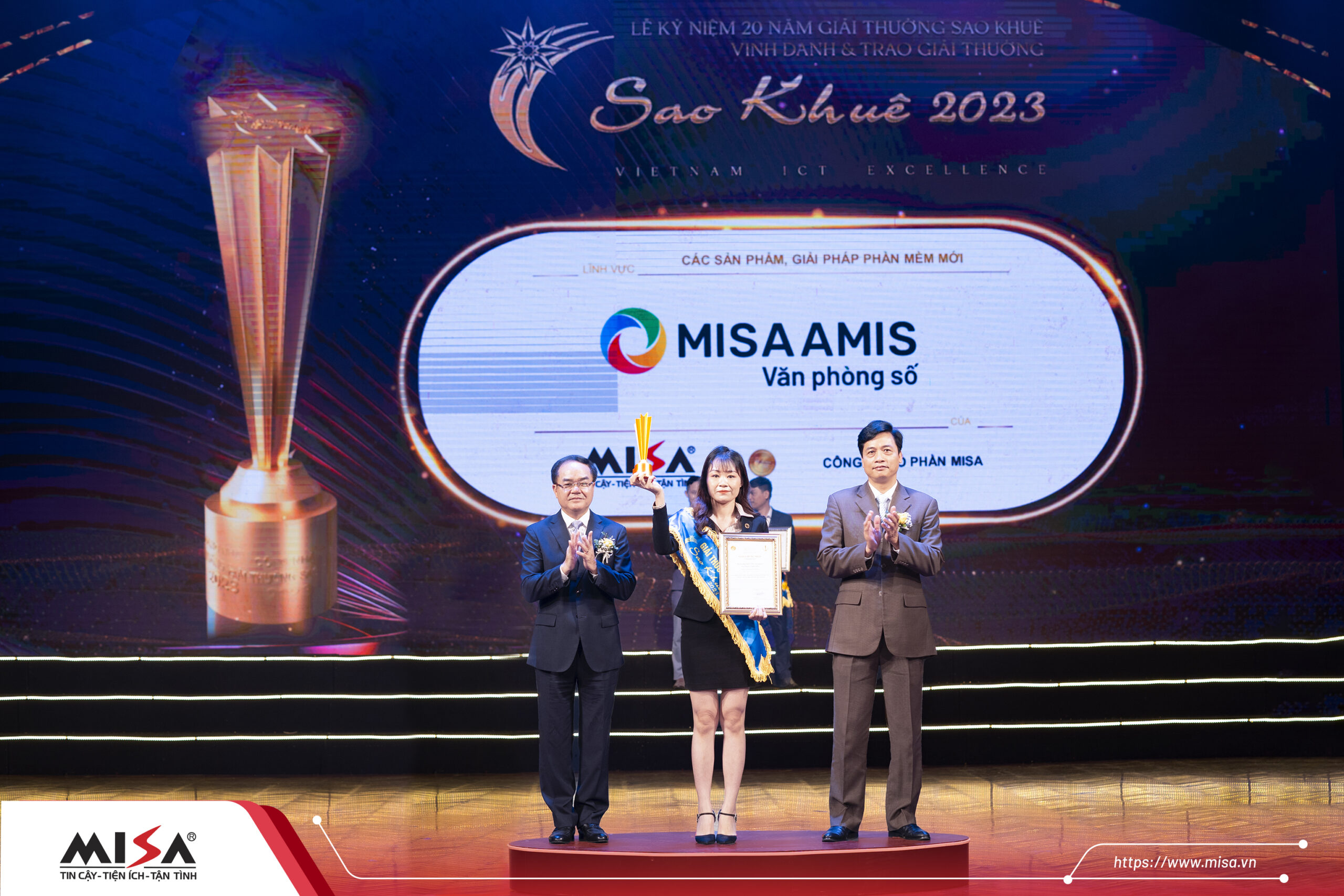 Giữ vững vị thế là một doanh nghiệp công nghệ top đầu Việt Nam, năm nay, MISA tiếp tục tỏa sáng tại Lễ trao giải Sao Khuê với 4 nền tảng, giải pháp được vinh danh. Vượt qua vòng thẩm định khắt khe từ hội đồng chuyên gia, nền tảng kế toán dịch vụ MISA ASP ghi danh ở hạng mục Các nền tảng chuyển đổi số. Ở hạng mục Các sản phẩm, giải pháp số, phần mềm kế toán hành chính sự nghiệp MISA Mimosa giành giải thưởng Sao Khuê trong lĩnh vực Tài chính số. Đặc biệt, 2 “tân binh” là nền tảng kết nối vay vốn MISA Lending và giải pháp MISA AMIS Văn phòng số lần đầu chào sân tại Sao Khuê với thành tích ấn tượng tại hạng mục Các sản phẩm, giải pháp phần mềm mới.