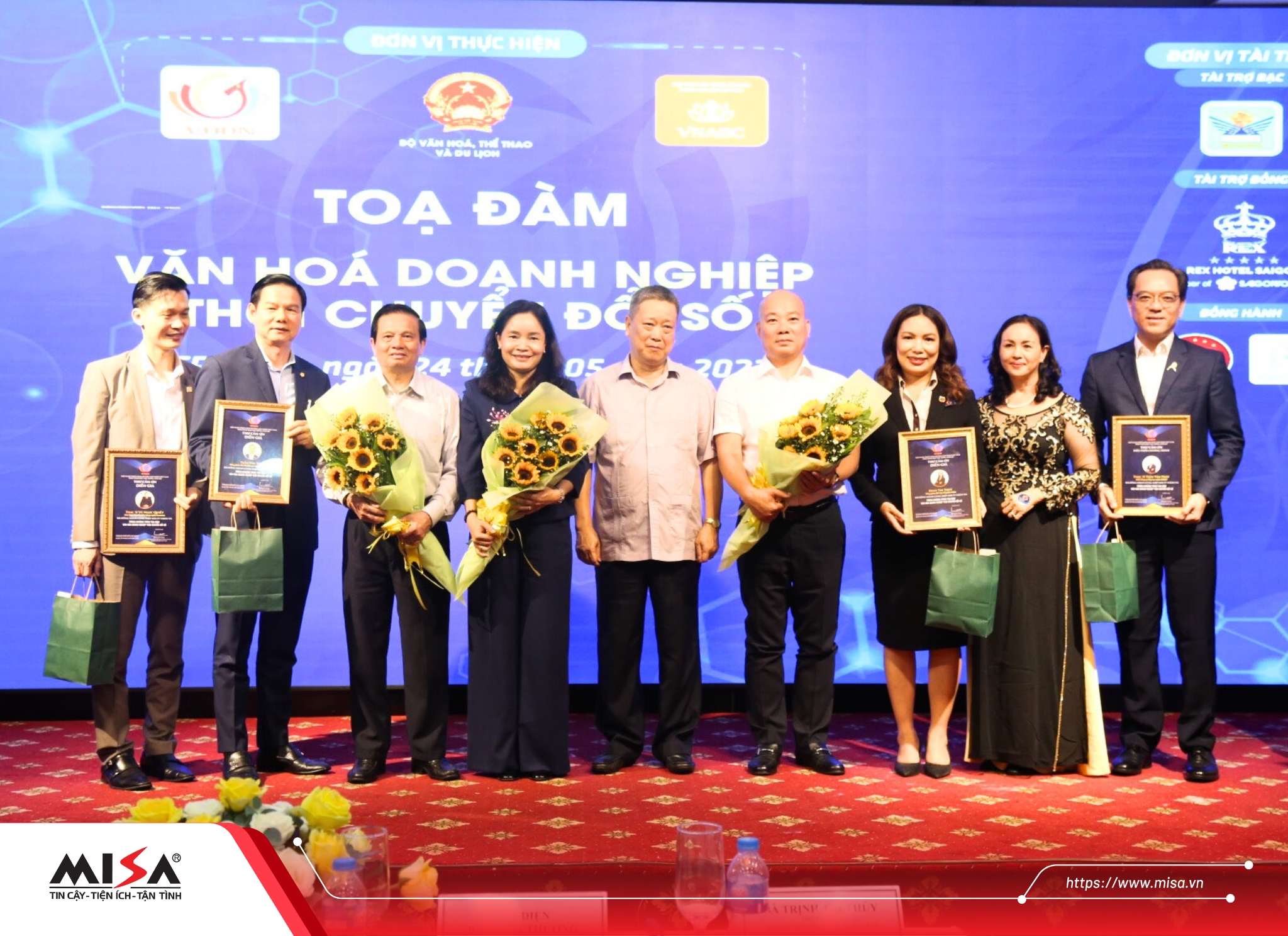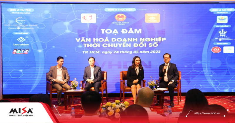 Cũng trong khuôn khổ Hội nghị, Tổng Giám đốc MISA Đinh Thị Thúy cùng một số đại diện các đơn vị đã tham gia chia sẻ tại Tọa đàm “Văn hóa doanh nghiệp thời chuyển đổi số”. Theo đó, Tổng Giám đốc nhấn mạnh: “Để phát triển bền vững, mỗi doanh nghiệp phải xây dựng một bản sắc văn hóa riêng biệt, độc đáo, nhưng cũng phải phù hợp và bắt kịp với xu thế của thời đại, nhất là trong bối cảnh chuyển đổi số hiện nay. Với vai trò là đơn vị tiên phong trong lĩnh vực CNTT, MISA nhận thấy mỗi doanh nghiệp cần kiến tạo một văn hóa làm việc số trong thời đại số. Tức là ứng dụng công nghệ vào quản trị, vận hành để giảm thiểu tối đa những hạn chế từ quản trị truyền thống, từ đó gia tăng hiệu quả công việc, tiết kiệm chi phí và tối ưu vận hành”.