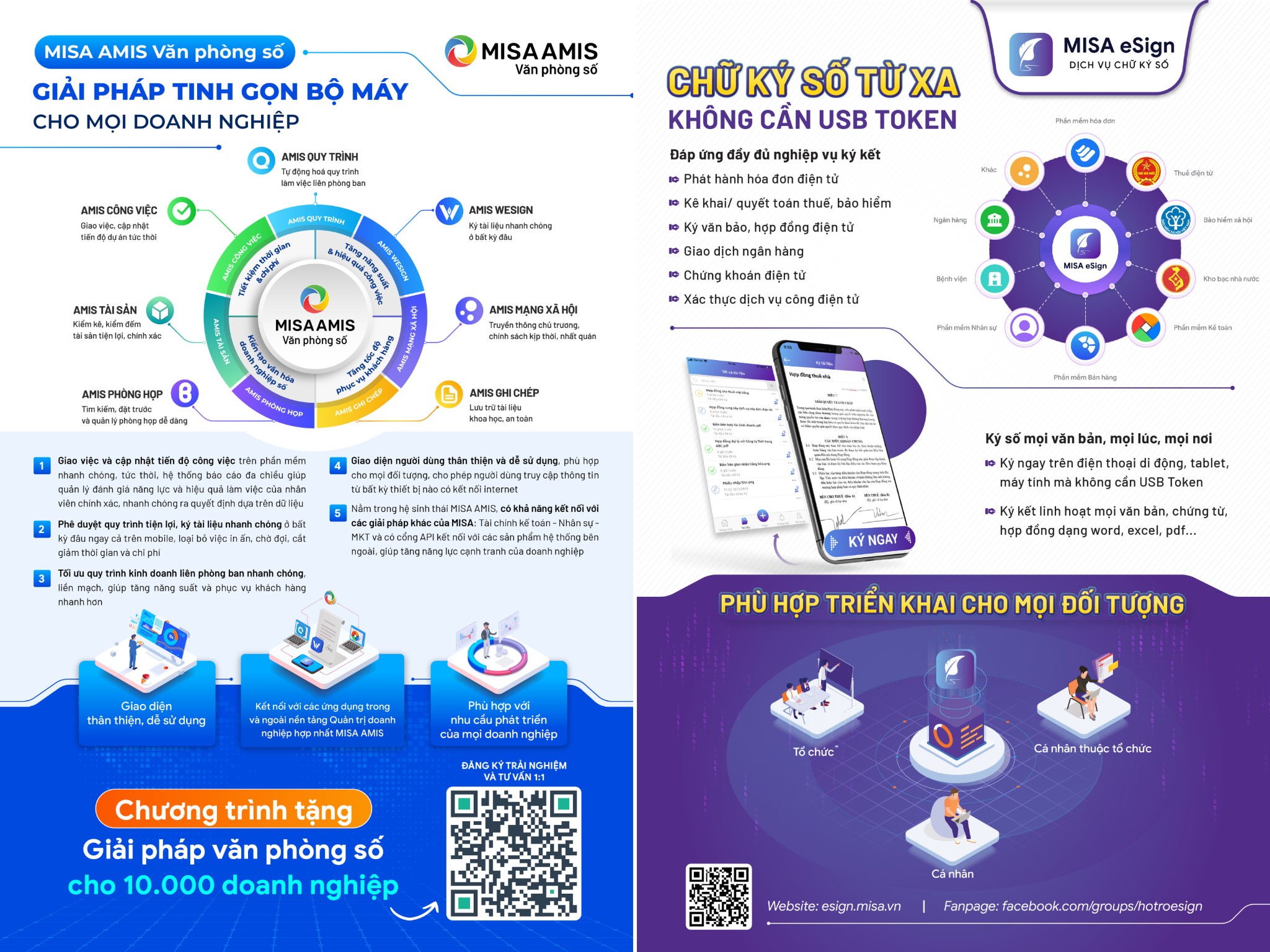 Đồng hành cùng doanh nghiệp trong tiến trình kiến tạo văn hóa doanh nghiệp số, MISA trưng bày và giới thiệu tại sự kiện 2 giải pháp chuyển đổi số ưu việt là MISA AMIS Văn phòng số và Dịch vụ Chữ ký số MISA eSign. Các giải pháp đã nhận được sự quan tâm của đông đảo các đại biểu, khách mời, các đơn vị doanh nghiệp tham dự sự kiện.