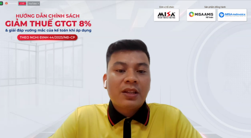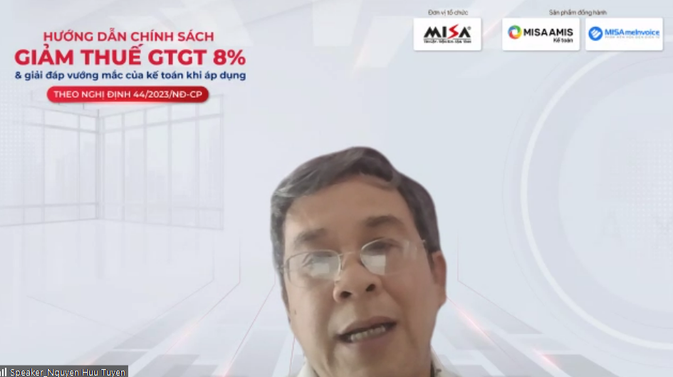Chiều ngày 11/7/2023, Công ty Cổ phần MISA (MISA) tổ chức hội thảo “Hướng dẫn chính sách giảm thuế giá trị gia tăng (GTGT) 8% theo nghị định 44/2023/NĐ-CP” với hình thức trực tuyến, thu hút 2000 khách mời doanh nghiệp tham dự.