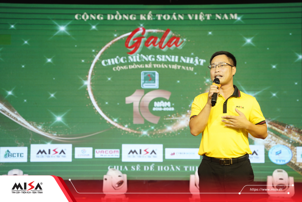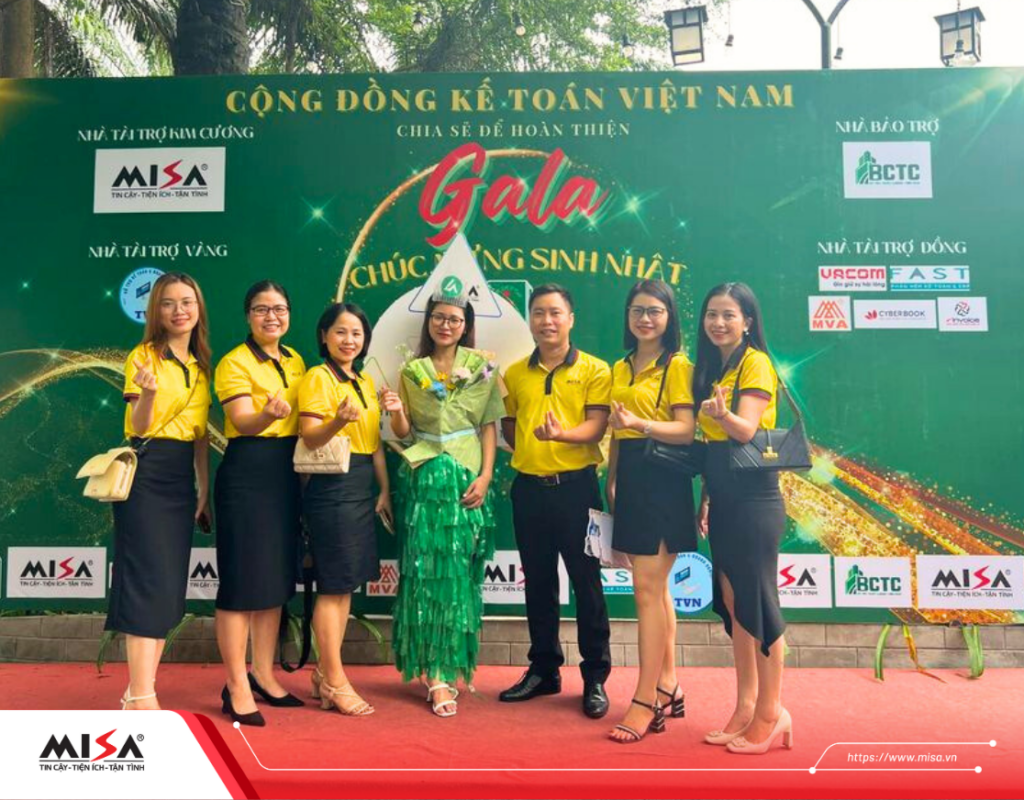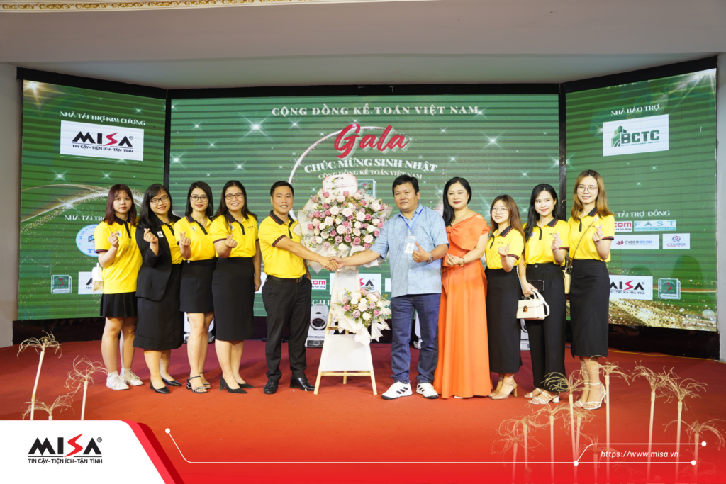 Chiều ngày 19/8/2023, Công ty Cổ phần MISA (MISA) đã tham dự và chúc mừng Gala sinh nhật lần thứ 10 của Cộng đồng Kế toán Việt Nam được tổ chức tại TP Hà Nội. Năm nay, MISA tiếp tục đồng hành cùng Cộng đồng Kế toán Việt Nam với vai trò nhà tài trợ Kim cương cùng mong muốn góp sức phát triển cộng đồng ngày một lớn mạnh.