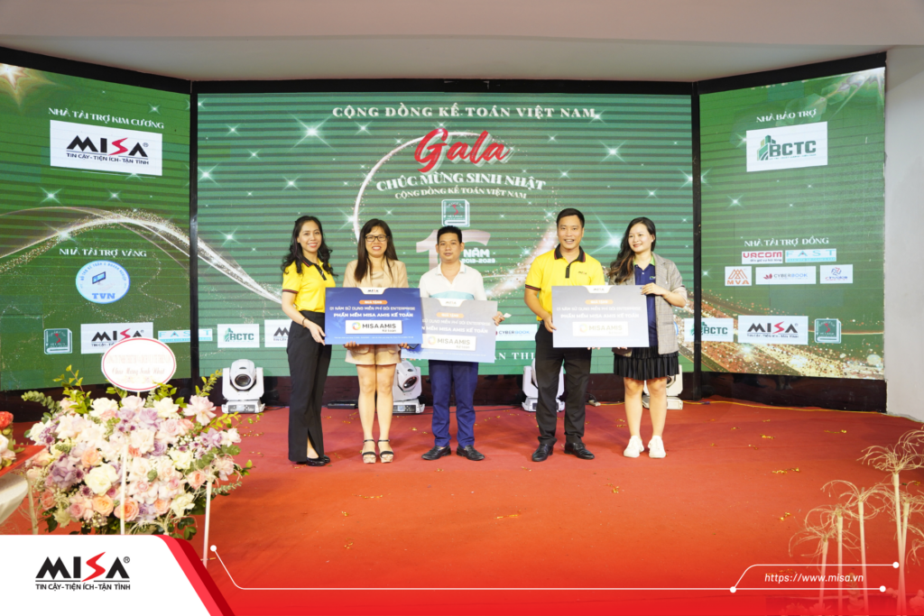 Cũng tại sự kiện, như 1 món quà tri ân đến các thành viên của Cộng đồng Kế toán Việt Nam, đại diện MISA đã chủ trì và trao tặng 1 năm sử dụng miễn phí gói Enterprise MISA AMIS Kế toán cho 3 khách mời may mắn nhất trong chương trình bốc thăm trúng thưởng.