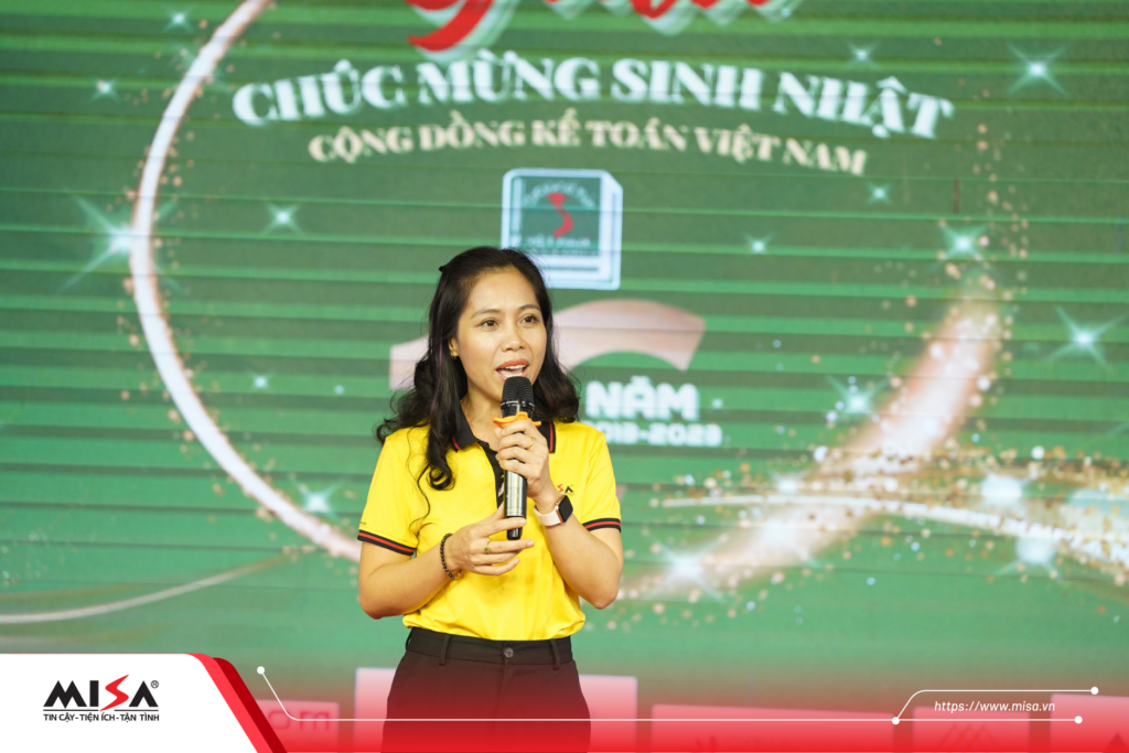 Phát biểu tại sự kiện, bà Nguyễn Thanh Huyền – Giám đốc Truyền thông MISA đã gửi lời chúc mừng nhiệt liệt đến Cộng đồng Kế toán Việt Nam và khẳng định cộng đồng nhà kế là cầu nối quan trọng cho những người làm kế toán, kiểm toán, đồng thời mang đến những giá trị thiết thực cho xã hội, đóng góp mạnh mẽ vào sự phát triển chung của nền kinh tế nước nhà. MISA sẽ tiếp tục đồng hành cùng Cộng đồng Kế toán trên hành trình lan tỏa những giá trị tốt đẹp và kính chúc Cộng đồng nhà kế ngày càng phát triển lớn mạnh để trở thành điểm tựa vững chắc cho tất cả những người đang công tác Kế toán, Kiểm toán trên khắp mọi miền đất nước.
