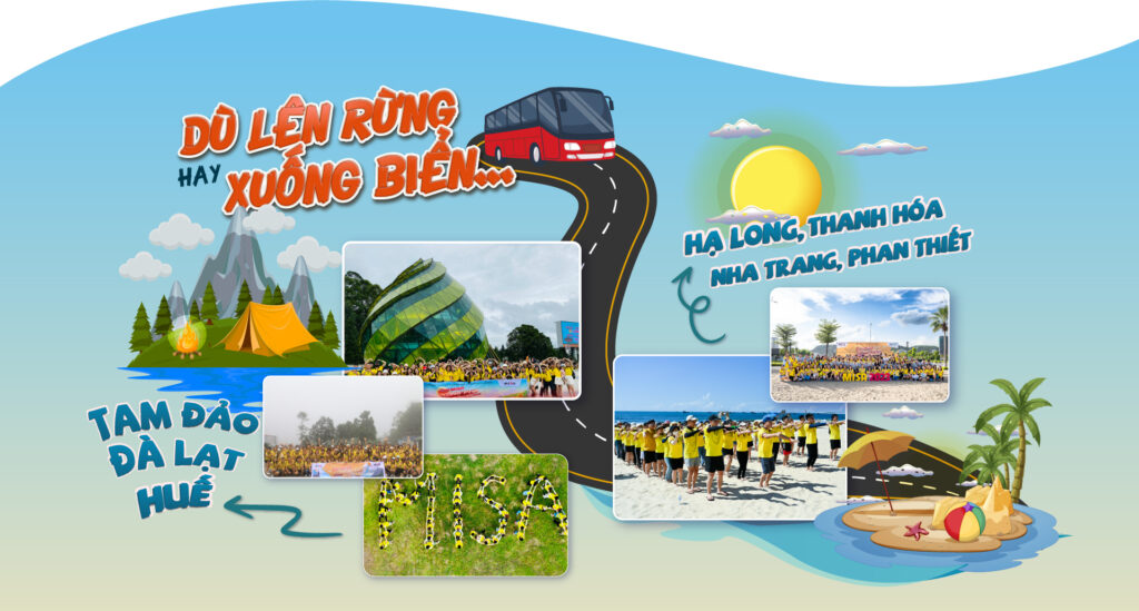 15 chuyến xe Team building hè 2023 của MISA đã dừng chân tại rất nhiều địa điểm xinh đẹp dọc khắp đất nước. Đó là Tam Đảo, Đà Lạt, Huế – những vùng núi rất thơ, rất chill hay những vùng biển ngập nắng như: Hạ Long, Thanh Hóa, Nha Trang, Phan Thiết.