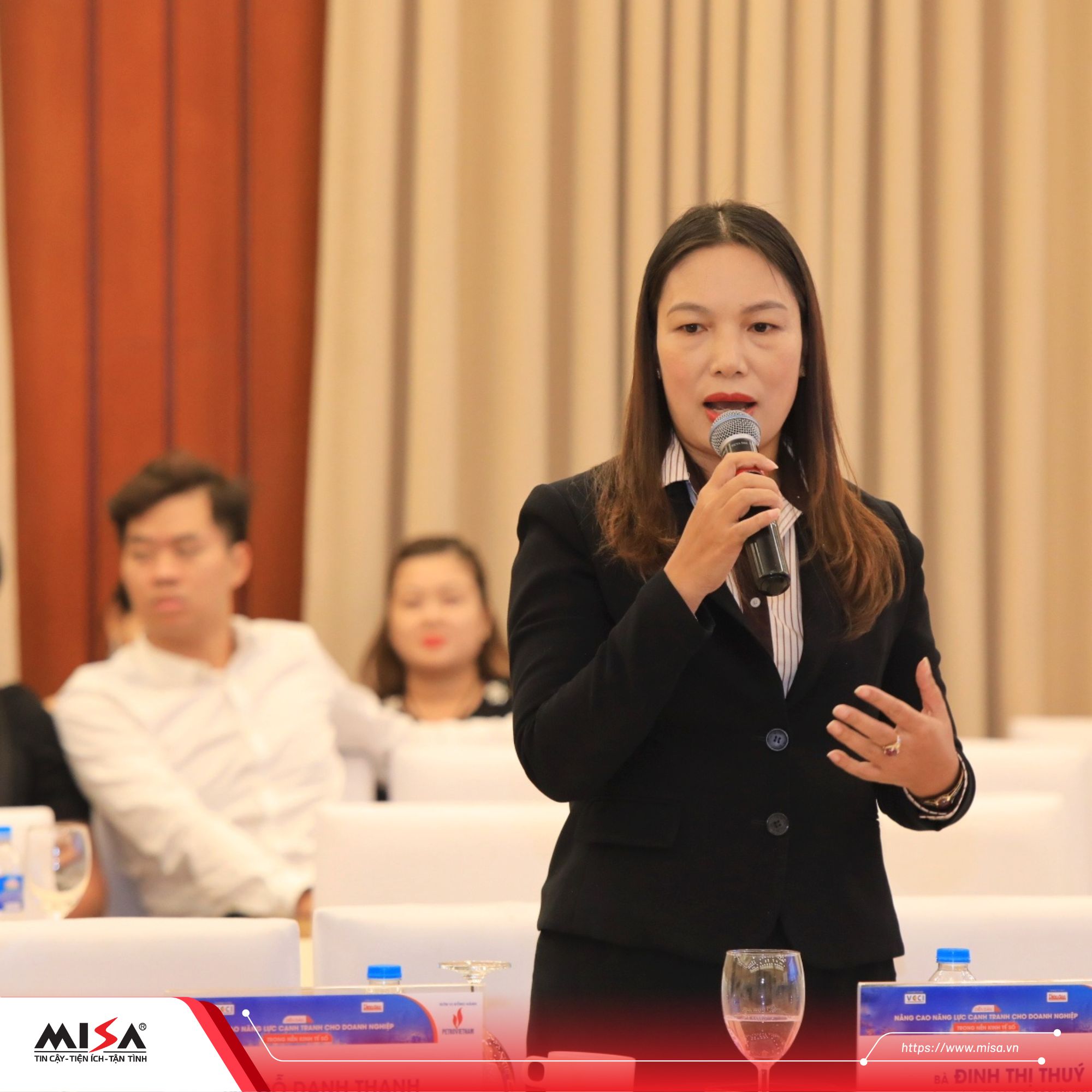 Để đồng hành cùng các cơ quan, tổ chức nâng cao năng lực cạnh tranh cho doanh nghiệp trong nền kinh tế số, Tổng Giám đốc MISA Đinh Thị Thúy đã giới thiệu về giải pháp nền tảng số giúp doanh nghiệp tối ưu hóa quy trình, nâng cao năng suất, tiết kiệm chi phí. Từ đó tạo tiền đề để nâng cao sức cạnh tranh cũng như mở rộng cơ hội để doanh nghiệp vươn lên mạnh mẽ trong nền kinh tế số.