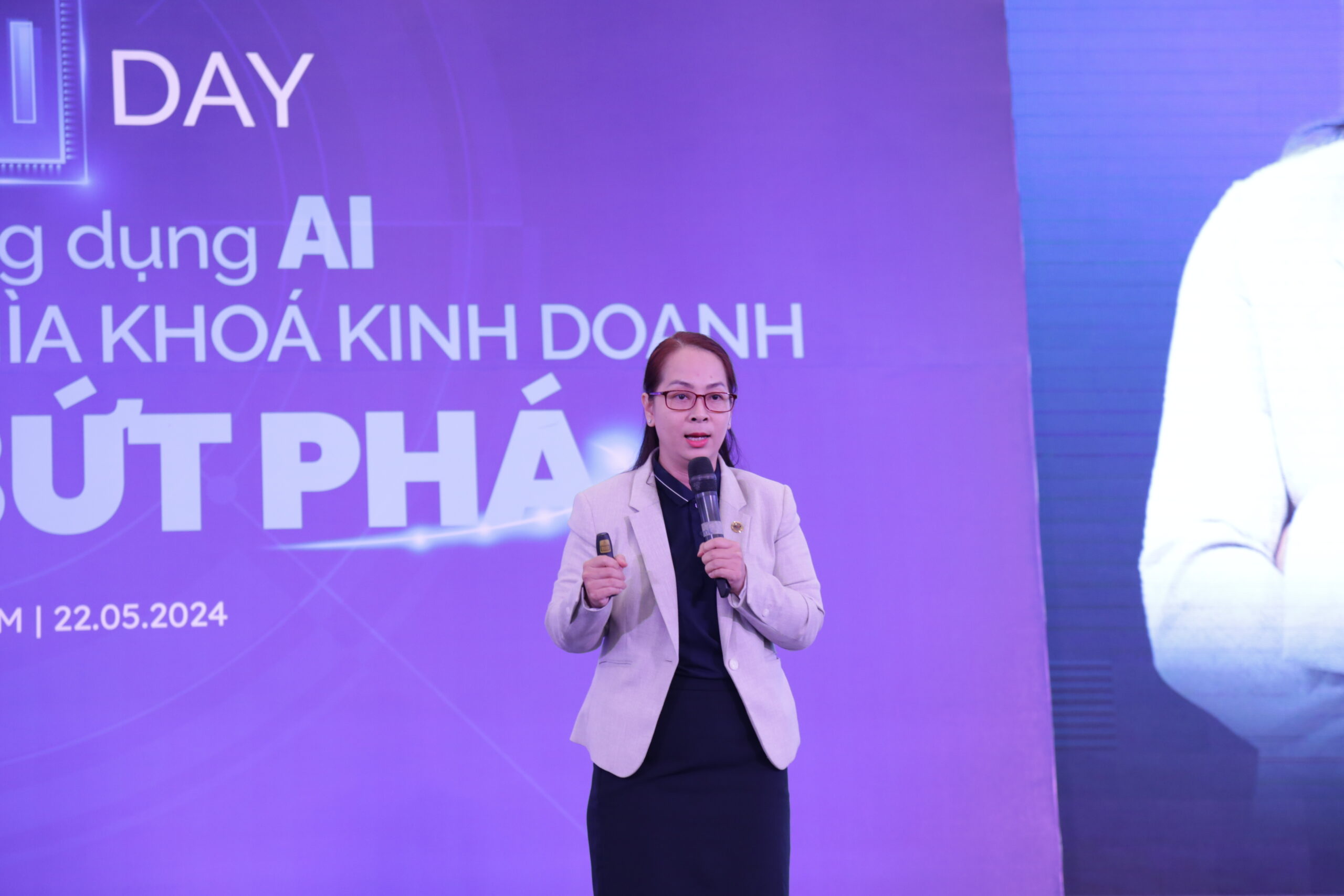 Bà Nguyễn Ngọc Lệ – Giám đốc TTKD GPDN Vừa, VP MISA TP HCM chia sẻ về giải pháp MISA AMIS tích hợp ứng dụng AI giúp doanh nghiệp gia tăng năng suất tại AI DAY 2024 giải pháp ứng dụng AI đầu tiên tại Việt Nam.