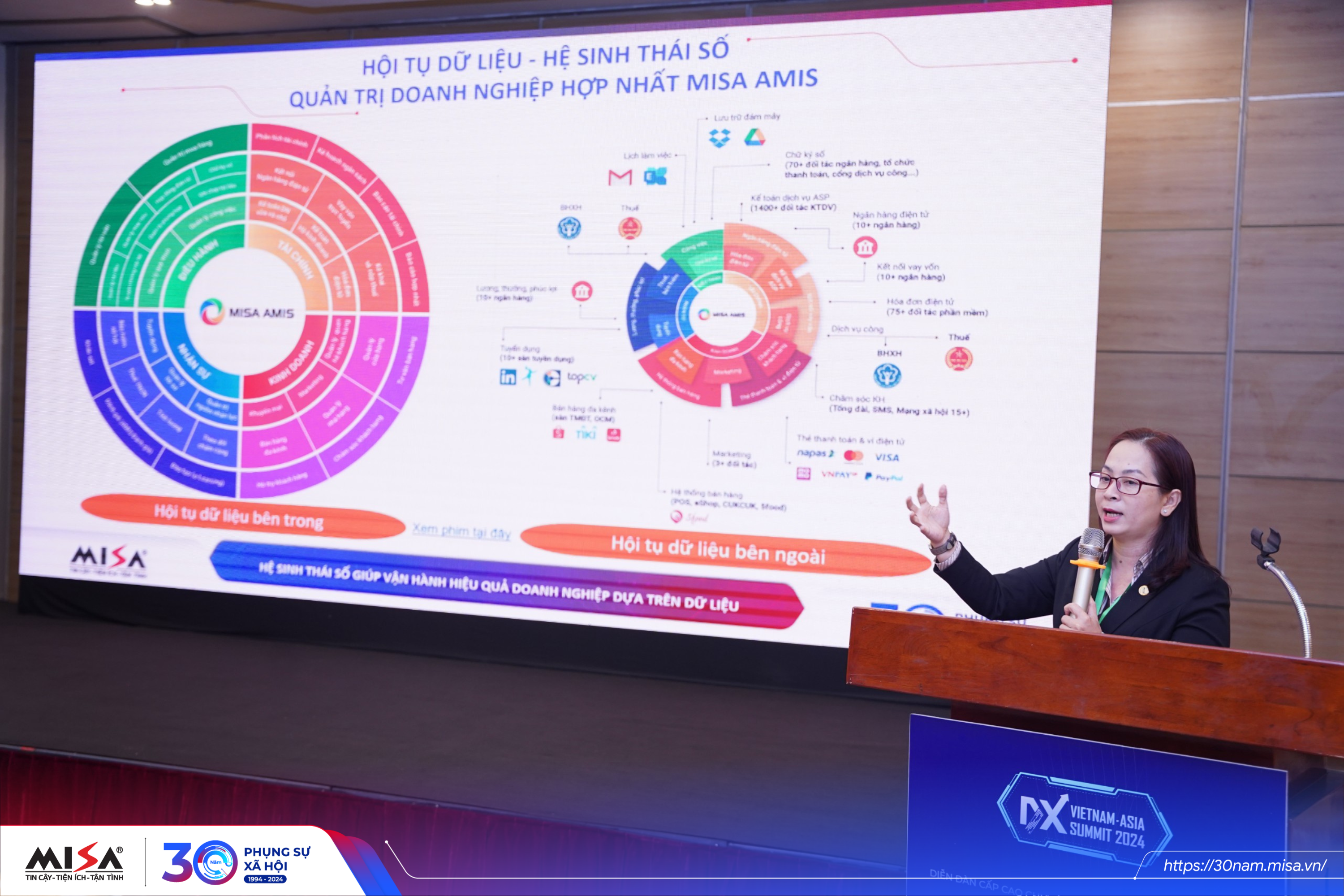 Ngày 29/5/2024, tại Diễn đàn cấp cao chuyển đổi số Việt Nam – Châu Á 2024 (DX Summit 2024), đại diện MISA đã có phần chia sẻ về kinh nghiệm triển khai và giải pháp số hỗ trợ doanh nghiệp vận hành hiệu quả dựa trên dữ liệu nhằm bứt phá trong bối cảnh kinh tế nhiều khó khăn, thách thức.