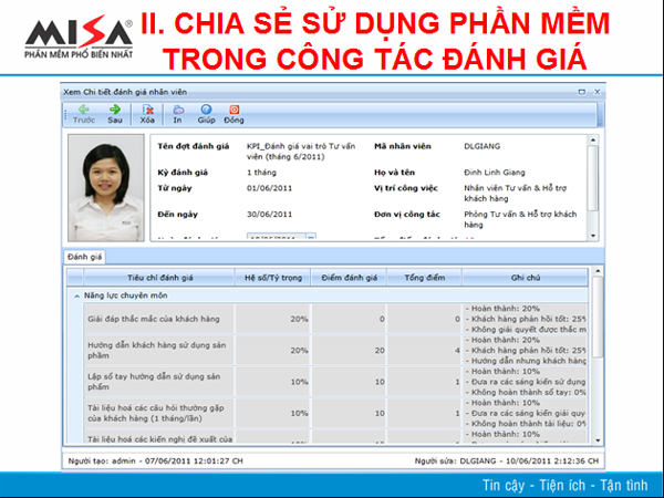 Tại hội thảo, MISA đã chia sẻ nội dung và kỹ năng đánh giá quản lý trong công ty, cách xây dựng bộ Hồ sơ năng lực, các phương pháp đánh giá và giới thiệu giải pháp MISA HRM. NET 2012 cho khách hàng tham dự. Cũng tại đây, ông Phạm Phú Lam đã nhận được nhiều câu hỏi về cách thức xây dựng bộ tiêu chí và phương pháp đánh giá hồ sơ năng lực.