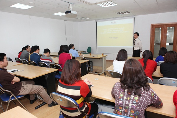 Phần còn lại của cuộc họp diễn ra với nội dung “Kế hoạch kinh doanh và quyết định lương mềm 2013” Phó TGĐ thường trực Đinh Thị Thúy trình bày.