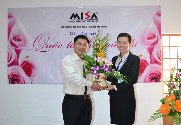 Chủ tịch HĐQT Lữ Thành Long gửi những lời chúc mừng tốt đẹp nhất cùng bó hoa tươi thắm đến đại diện phái đẹp của MISA – P TGĐ thường trực Đinh Thị Thúy