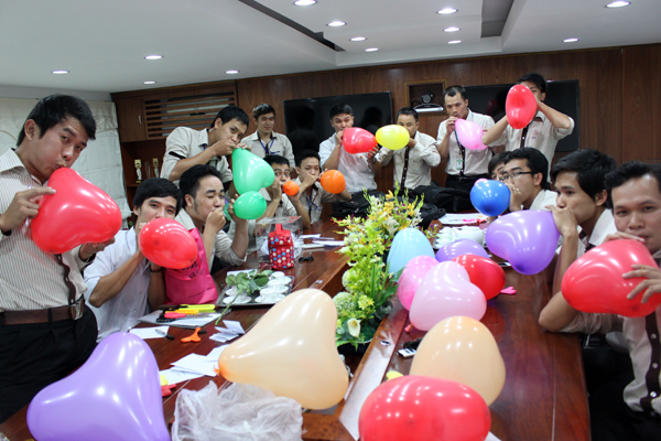 Trước đó, các chàng trai đã rất vất vả với những quả bóng bay này. Nếu một năm có khoảng vài ngày phải treo bóng bay thế này các chàng sẽ có nghề tay tái trong thời khủng hoảng