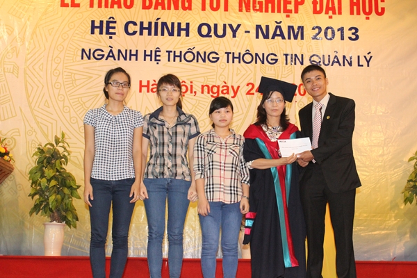 Buổi lễ có sự hiện diện của GS.TS Phạm Quang Trung – Phó hiệu trưởng; PGS.TS Trần Thị Song Minh – Trưởng khoa Hệ thống thông tin quản lý ; Các thầy cô giáo trong Ban giám hiệu cùng toàn thể các bạn sinh viên K51 khoa Hệ thống thông tin quản lý cùng một số CBNV văn phòng MISA Hà Nội.