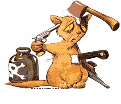 – Đồ ngốc. Lúc đầu tôi đã định bắn vào ngực, nhưng rồi nhớ ra rằng tôi đã mất 20.000 $ để nó trở nên đẹp như thế. Bởi vậy tôi mới chĩa súng vào tai, nhưng tôi sợ nghe tiếng súng bởi thế tôi mới lấy ngón trỏ bịt tai kia lại để đỡ ồn. Rồi tôi bóp cò…