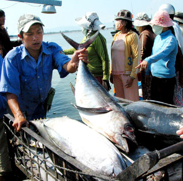 Nhu cầu NK cá ngừ giảm, nguồn nguyên liệu trong nước thiếu hụt, ảnh hưởng mạnh đến XK cá ngừ trong năm nay. Thời gian qua liên tiếp các cơn bão đổ bộ vào các tỉnh miền Trung đã làm ảnh hưởng đến hoạt động khai thác thủy sản của ngư dân Việt Nam. Vì vậy mà trong 10 tháng đầu năm, sản lượng khai thác cá ngừ tại các tỉnh khai thác cá ngừ trọng điểm đều giảm so với cùng kỳ năm ngoái: Phú Yên ước đạt 4.200 tấn (giảm 30,5%); Khánh Hòa 2.800 tấn (giảm 20%); Bình Định ước đạt 7.811 tấn (giảm 6%).