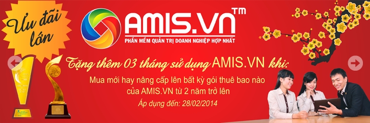 Nhân dịp đầu xuân năm mới Giáp Ngọ 2014, Công ty Cổ phần MISA xin gửi đến quý khách hàng chương trình ưu đãi đặc biệt “Tặng thêm 3 tháng sử dụng cho khách hàng mua AMIS.VN có thời gian sử dụng 2 năm trở lên” như một món quà cùng lời chúc năm mới An khang – Thịnh vượng!
