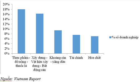Xét về ngành nghề, ngành thực phẩm, đồ uống là ngành có đông doanh nghiệp tăng trưởng nhanh nhất (18%), tiếp sau là ngành xây dựng, vật liệu xây dựng và bất động sản (16%), ngành khoáng sản, xăng dầu (9%), ngành tài chính (8%), ngành hóa chất (7%).