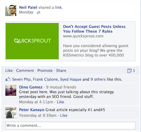 Điều đó quan trọng bởi Facebook có một thuật toán tương tự như của Google. Thuật toán đó của Facebook được gọi là Edgerank và nó cho bạn biết những status được like, bình luận hay chia sẻ nhanh như thế nào. Càng nhiều like, bình luận và chia sẻ, càng nhiểu người xem được status Facebook đó.
