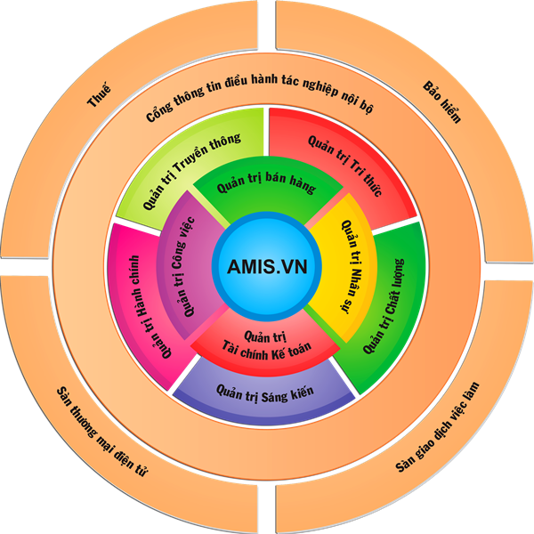 AMIS – All in one Management Information System là giải pháp quản trị doanh nghiệp hợp nhất, được tích hợp từ nhiều hệ thống quản trị khác nhau như: Kế toán, Bán hàng, Nhân sự. Ngoài ra, AMIS.VN còn hỗ trợ nhiều công tác quản trị khác trong doanh nghiệp như: Truyền thông, Tri thức, Sáng kiến, Tài sản, Chất lượng… cũng như hỗ trợ công tác của bộ phận hành chính. Người dùng chỉ cần sử dụng một tài khoản duy nhất để truy cập và sử dụng toàn bộ các hệ thống trên, giúp nâng cao hiệu quả công việc, tối ưu và giảm thiểu chi phí cho doanh nghiệp. AMIS.VN phù hợp triển khai cho tất cả các doanh nghiệp có quy mô từ nhỏ đến lớn thuộc mọi loại hình, lĩnh vực.