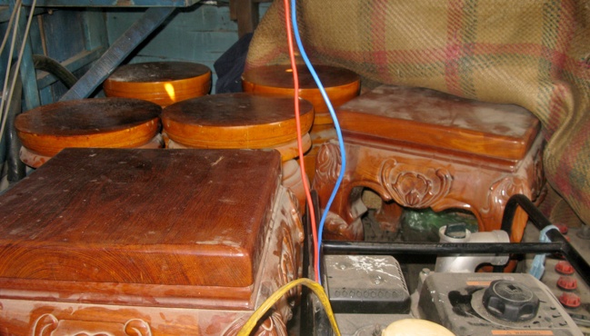 Sản phẩm gỗ được cất giấu dưới hầm máy phương tiện.