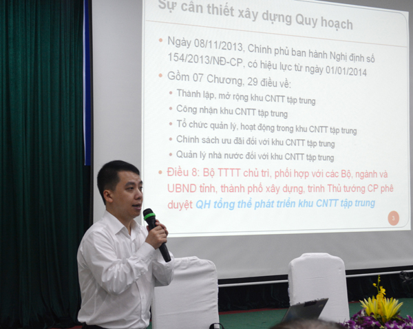Ông Lã Hoàng Trung – Phó viện trưởng Viện chiến lược TT-TT, Phổ biến về dự thảo quy hoạch khu CNTT tập trung